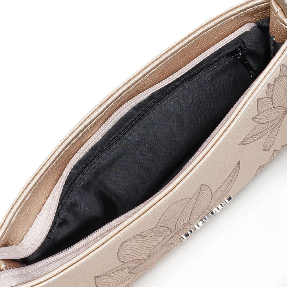 Nechte svou krásu vyniknout s kabelkou RIEKER v zářivě zlaté barvě, která okamžitě upoutá svým luxusním leskem a květinovým potiskem dodávajícím jemný romantický nádech. Stříbrné logo značky na přední straně jemně zvýrazní originalitu tohoto modelu. Kromě atraktivního vzhledu kabelka nabízí také praktičnost, kterou ocení každá moderní žena. Hlavní prostor je bezpečně uzavírán zipem a uvnitř se nacházejí menší kapsičky ideální pro uložení drobností, které tak budete mít přehledně uspořádány. Výhodou je i variabilita nošení – díky dlouhému nastavitelnému popruhu si ji můžete pohodlně zavěsit přes rameno nebo křížem přes tělo, což je ideální zejména tehdy, když potřebujete volné ruce. Pokud však chcete působit elegantněji, poslouží vám kratší popruh, který je jako stvořený k nošení v ruce. Oba popruhy jsou navíc odepínatelné, takže si kabelku snadno přizpůsobíte podle aktuální příležitosti, nálady či stylu, v jakém se rozhodnete vyrazit. Tato kabelka RIEKER není jen módním doplňkem, ale také spolehlivým partnerem pro každý váš den – od běžných pracovních povinností až po večerní setkání. Efektní design a praktické zpracování z ní dělají neodolatelný doplněk, který ve vašem šatníku určitě nesmí chybět.