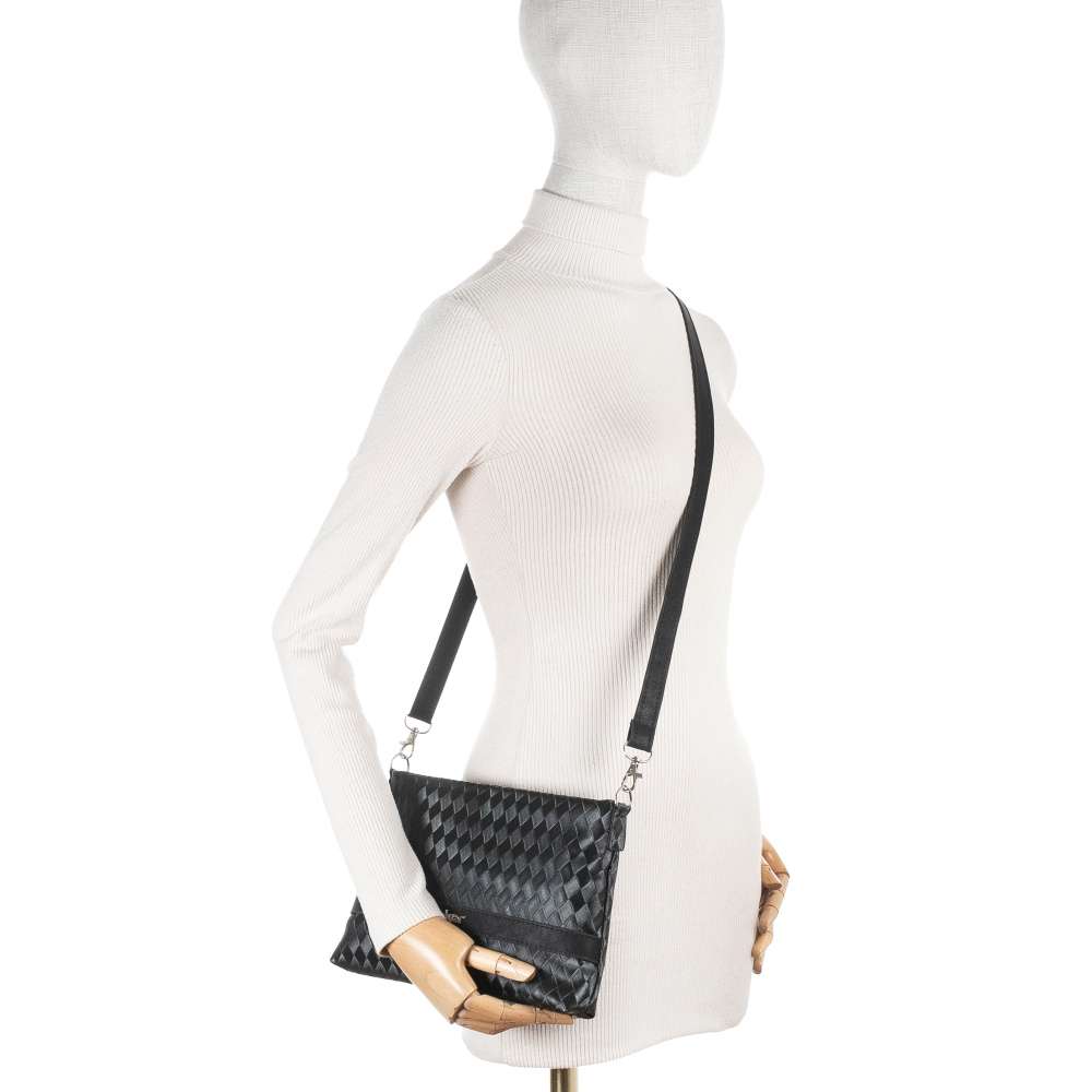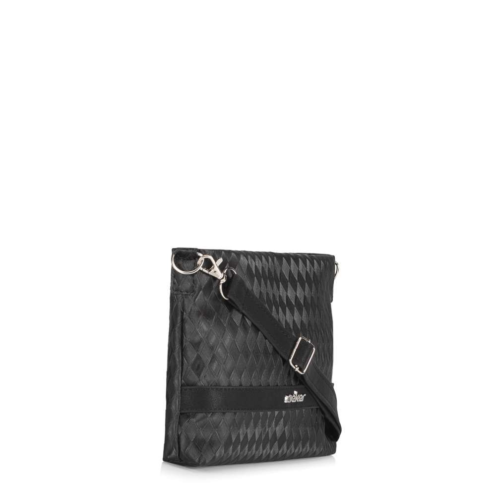 Tato kabelka RIEKER v elegantním černém provedení je ztělesněním moderního stylu a nadčasové elegance. Svršek kabelky zdobí atraktivní vzor, ??který jí dodává jedinečný vizuální charakter a decentní proužek dekorovaný logem značky stříbrné barvy působí jako designový šperk, který dodává kabelce punc originality. Interiér kabelky byl navržen tak, aby splňoval všechny požadavky moderní ženy, která chce mít ve svých věcech pořádek. Hlavní prostor je uzavírán zipem, který zajistí, že vaše osobní předměty zůstanou v bezpečí. Po jeho otevření se odhalí důmyslně rozčleněný vnitřní prostor – na jedné straně se nachází kapsa se zipem, na druhé otevřená kapsa. Praktičnost kabelky doplňuje odnímatelný a nastavitelný ramenní popruh, který si můžete přizpůsobit podle své nálady nebo příležitosti. Kabelka RIEKER dokonale zapadne do vašeho šatníku a vynikne v každé situaci, doplní elegantní outfit do práce, ale rovněž dobře ladí s ležérním městským stylem během volných dnů. Rozměry: cca V 17 cm x Š 24 cm x H 4 cm Vnitřní uspořádání: kabelka není dělená Kabelka má délkově nastavitelný popruh, který lze odepnout. Maximální délka nastavitelného popruhu je cca 125 cm.