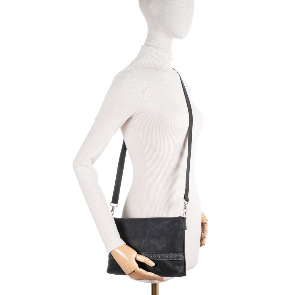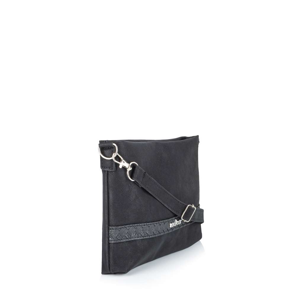 Černá kabelka nemusí být jen nenápadným doplňkem – právě naopak, tento model značky RIEKER se stane dominantou vašeho outfitu. Působivý materiál svršku v kombinaci s efektním strukturovaným páskem a decentním logem značky dodává kabelce moderní a sofistikovaný vzhled, který se hodí ke každodennímu i elegantnějšímu stylu. Promyšlené vnitřní uspořádání nabízí dostatek prostoru pro všechny nezbytnosti, přičemž praktické menší kapsy vám pomohou udržet dokonalý přehled o uložených věcech. Nechybí ani odepínatelný a délkově nastavitelný popruh, který umožní nošení dle vašich preferencí – přes rameno nebo pohodlně křížem přes tělo. Tato kabelka je důkazem, že černá barva dokáže být nejen univerzální, ale také výjimečně stylová a elegantní. Rozměry: cca V 17 cm x Š 24 cm x H 4 cm Vnitřní uspořádání: kabelka není dělená Kabelka má délkově nastavitelný popruh, který lze odepnout. Maximální délka nastavitelného popruhu je cca 135 cm.