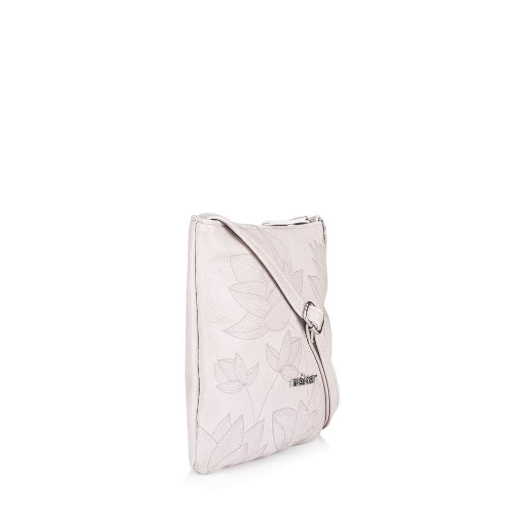 Kabelka Rieker v jemném béžovém tónu s květinovým potiskem je ztělesněním ženského šarmu a jedinečné elegance. Na první pohled okouzlí svou něžností, ale zároveň v sobě ukrývá výraznou osobnost, kterou podtrhuje stříbrné logo. Navzdory své kompaktní velikosti nabízí promyšlený prostor, kde má všechno své místo. Horní zip bezpečně chrání vaše věci a vnitřní menší kapsy vám umožní mít ve věcech dokonalý přehled. Díky nastavitelnému popruhu se kabelka přizpůsobí vašemu dni i náladě – můžete ji nosit ležérně křížem přes tělo při dynamickém tempu města nebo elegantně přes rameno, kdy chcete zazářit a působit sofistikovaně. Tato kabelka není jen praktickým doplňkem – je to stylový detail, který rozzáří váš outfit v práci i během chvil volného času a dodá každému dni nádech elegance a sebevědomí. Rozměry: cca V 20 cm x Š 20 cm x H 2 cm Vnitřní uspořádání: kabelka není dělená. Kabelka má délkově nastavitelný popruh, který nelze odepnout. Maximální délka nastavitelného popruhu je cca 135 cm.