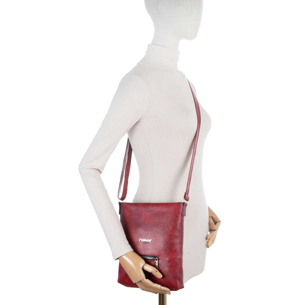 Tato stylová kabelka RIEKER v odstínu červené je stvořená pro ženy, které milují kombinaci módního vzhledu a energie. Svršek zdobí tmavší linie, které jí dodávají hloubku a vizuální zajímavost. Přední strana je zvýrazněna stříbrným logem RIEKER, které decentně podtrhuje prémiový charakter značky, zatímco výrazný zip přední kapsičky dodává modelu dynamický vzhled. Tento designový prvek zároveň není jen ozdobou - zip otevírá praktickou přední přihrádku, do které si můžete uložit drobnosti. Vrchní zip kabelky odhaluje důkladně promyšlený interiér. Hlavní prostor je dostatečně prostorný pro všechny vaše každodenní nezbytnosti – mobil, peněženku, klíče, menší kosmetiku či zápisník. Uvnitř se nacházejí dvě menší vnitřní kapsičky, jedna otevřená a druhá se zipovým uzavíráním. Díky tomuto promyšlenému členění budete mít v kabelce vždy pořádek a vše na dosah ruky. O pohodlí při nošení se stará délkově nastavitelný ramenní popruh, který umožňuje různé způsoby nošení – klasicky přes rameno nebo crossbody stylem pro volné ruce a maximální pohodlí. Tento variabilní design dělá z kabelky praktického společníka na běžné dny v práci, nákupy, procházky městem, ale také na večerní setkání s přáteli. Kabelka RIEKER je nejen praktická, ale také vizuálně přitažlivá – zaručeně oživí každý outfit a dodá mu jemný nádech originality. Rozměry: cca V 23 cm x Š 18 cm x H 5 cm Vnitřní uspořádání: kabelka není dělená. Kabelka má délkově nastavitelný popruh, který nelze odepnout. Maximální délka nastavitelného popruhu je cca 130 cm.