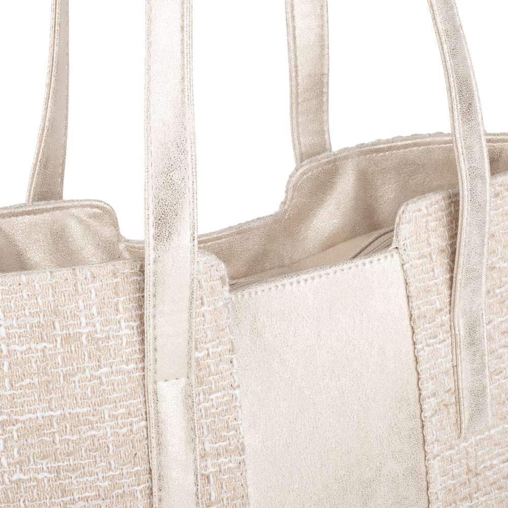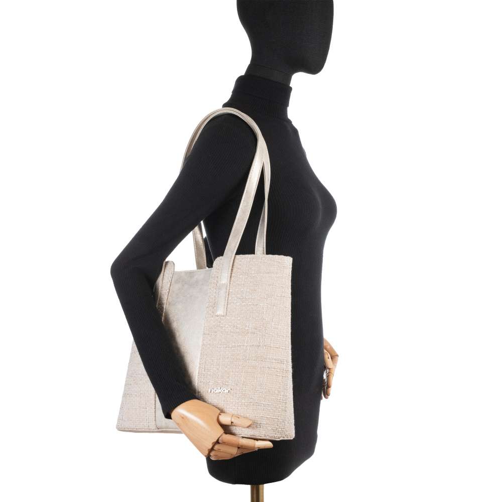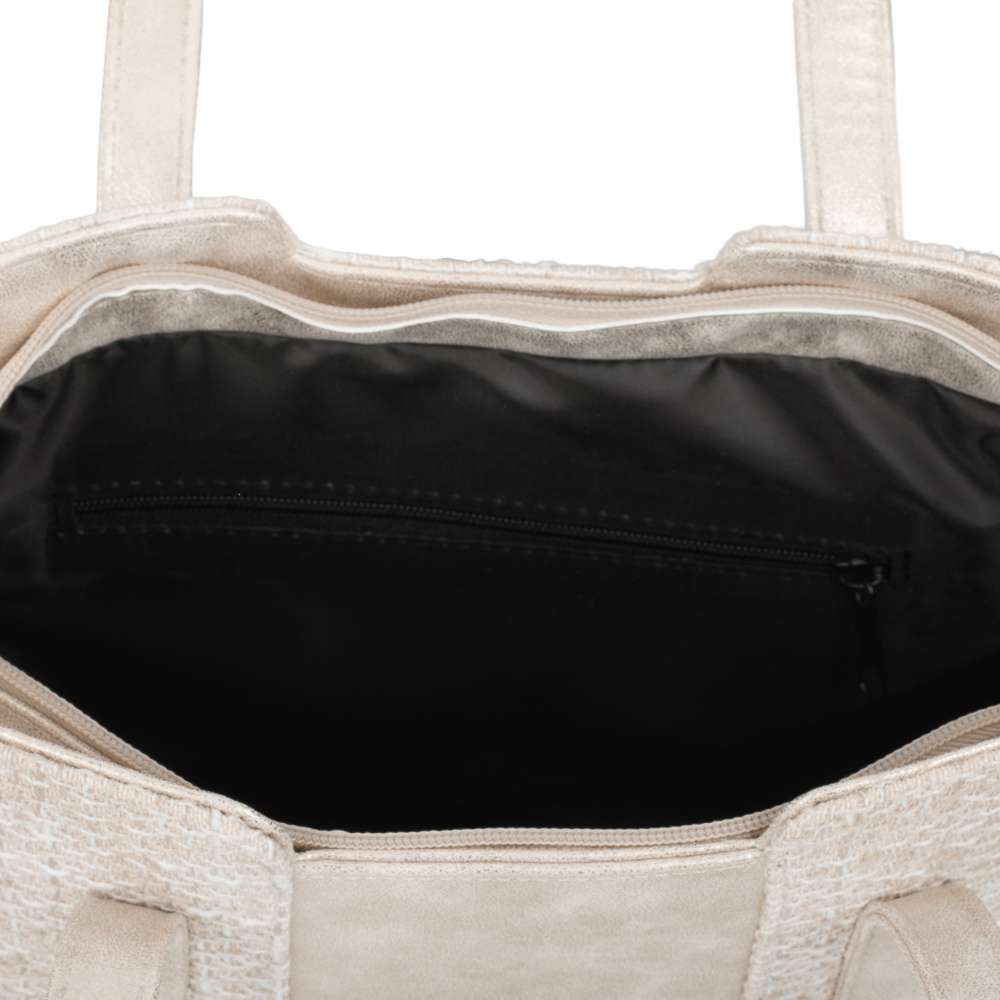 Kabelka RIEKER zaujme působivou kombinací textilního materiálu se strukturou v příjemné barevné harmonii a půvabnými odlesky materiálu ve zlatém tónu. Tato souhra materiálů vytváří atraktivní vizuální efekt a stříbrné logo značky působí jako elegantní šperk, který kabelce dodává punc originality. Prostorný interiér uzavíraný zipem nabízí praktické členění se dvěma menšími přihrádkami pro dokonalou organizaci vašich drobností. Zadní kapsička na zip zajistí rychlý a pohodlný přístup k věcem, které chcete mít vždy po ruce. Dva pevné popruhy umožňují komfortní nošení přes rameno a poskytují maximální pohodlí i během náročného dne. Tato kabelka RIEKER je víc než jen doplněk – je stylovým společníkem, který dokonale doplní městský outfit, pracovní look i volnočasové kombinace.