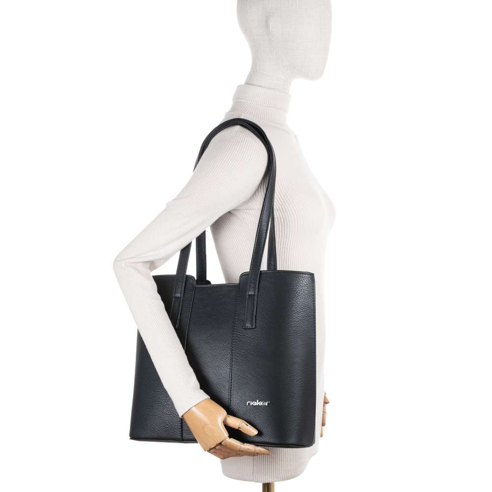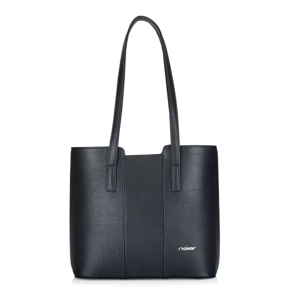 Tato kabelka ve stylu značky RIEKER je dokonalým spojením nadčasového designu, praktičnosti a detailního přepracování. Už na první pohled zaujme svým čistým, moderním tvarováním, které působí univerzálně a zároveň sofistikovaně. Černý svršek působí univerzálně a snadno se kombinuje s jakýmkoli outfitem, ať už jde o běžné denní oblečení, business look nebo večerní styl. Dekoračním prvkem je ikonické stříbrné logo RIEKER, které kabelce dodává punc originality a jemný luxusní akcent. Přední část kabelky je navržena s důrazem na estetiku, originálně spojené díly materiálu vytváří zajímavý vizuální efekt, který model zjemňuje a činí jej nezaměnitelným. Z praktického hlediska je tato kabelka navržena tak, aby spolehlivě provázela moderní ženy po celý den. Na zadní straně se nachází menší zipová kapsička, ideální pro uložení drobných předmětů, které chcete mít okamžitě po ruce bez potřeby otevírání hlavního prostoru. Vrchní zip vede do prostorného interiéru, který nabízí přehledné uspořádání – jednu bezpečnou vnitřní přihrádku se zipem na cennosti a druhou otevřenou přihrádku určenou pro drobnosti, které potřebujete mít rychle dostupné. Kabelka disponuje dvěma pevnými, delšími popruhy, které zaručují pohodlné nošení přes rameno i při delším používání. Promyšlené podšití a pevná konstrukce kabelky zajišťují, že si udrží svůj tvar i po delším nošení. Značka RIEKER svojí filozofií opakovaně dokazuje, že praktické doplňky mohou být zároveň stylové, komfortní a designově propracované. Rozměry: cca V 30 cm x Š 34 cm x H 12 cm Vnitřní uspořádání: Kabelka není dělená. Délka popruhu pro nošení přes rameno je cca 60 cm.
