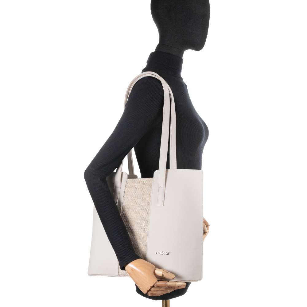 Detailní informace Nechte se okouzlit kabelkou RIEKER, kde se nadčasová elegance potýká s moderním designem a funkčností vytvořenou pro každodenní komfort. Béžový svršek v hladkém provedení je harmonicky doplněn středovým páskem s materiálovou strukturou, který podtrhuje výjimečný charakter kabelky. Stříbrné logo značky působí jako elegantní šperk dodávající punc originality a promyšlené tvarování dodává kabelce osobitý styl. Prostorný interiér uzavíraný zipem nabízí praktické členění se dvěma menšími přihrádkami, zatímco zadní kapsička na zip zajistí rychlý přístup k drobnostem. Dva pevné popruhy umožňují pohodlné nošení přes rameno a poskytují maximální komfort i během náročného dne. Tato kabelka dokonale doplní městský outfit, pracovní look i volnočasové kombinace a stane se nepřehlédnutelnou součástí vašeho každodenního života.