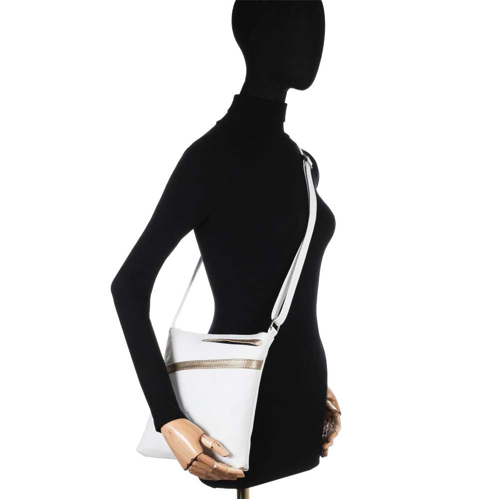Tato kabelka RIEKER v nadčasové bílé barvě je stvořená pro ženy, které chtějí zaujmout a zároveň ocenit praktičnost na každém kroku. Efektní metalické detaily elegantně podtrhují ženský půvab, zatímco stříbrné logo značky na přední straně dodává kabelce prémiový vzhled. Funkčnost je stejně přepracovaná jako design. Hlavní prostor kabelky, uzavíratelný zipem, poskytuje dostatek místa pro všechny každodenní nezbytnosti. Vnitřní menší přihrádky umožňují přehledné uspořádání drobností, zatímco zadní kapsa na zip a malá přední kapsička poskytuje diskrétní místo pro uložení drobností, které chcete mít vždy po ruce. Kabelka je navržena s důrazem na pohodlí a variabilitu nošení. Délkově nastavitelný popruh umožňuje nošení přes rameno nebo křížem přes tělo, takže si ji můžete přizpůsobit přesně podle aktuálního outfitu a situace. Rieker přináší doplněk, který vás nezklame – praktický, moderní a připravený držet krok s vaším tempem každý den.