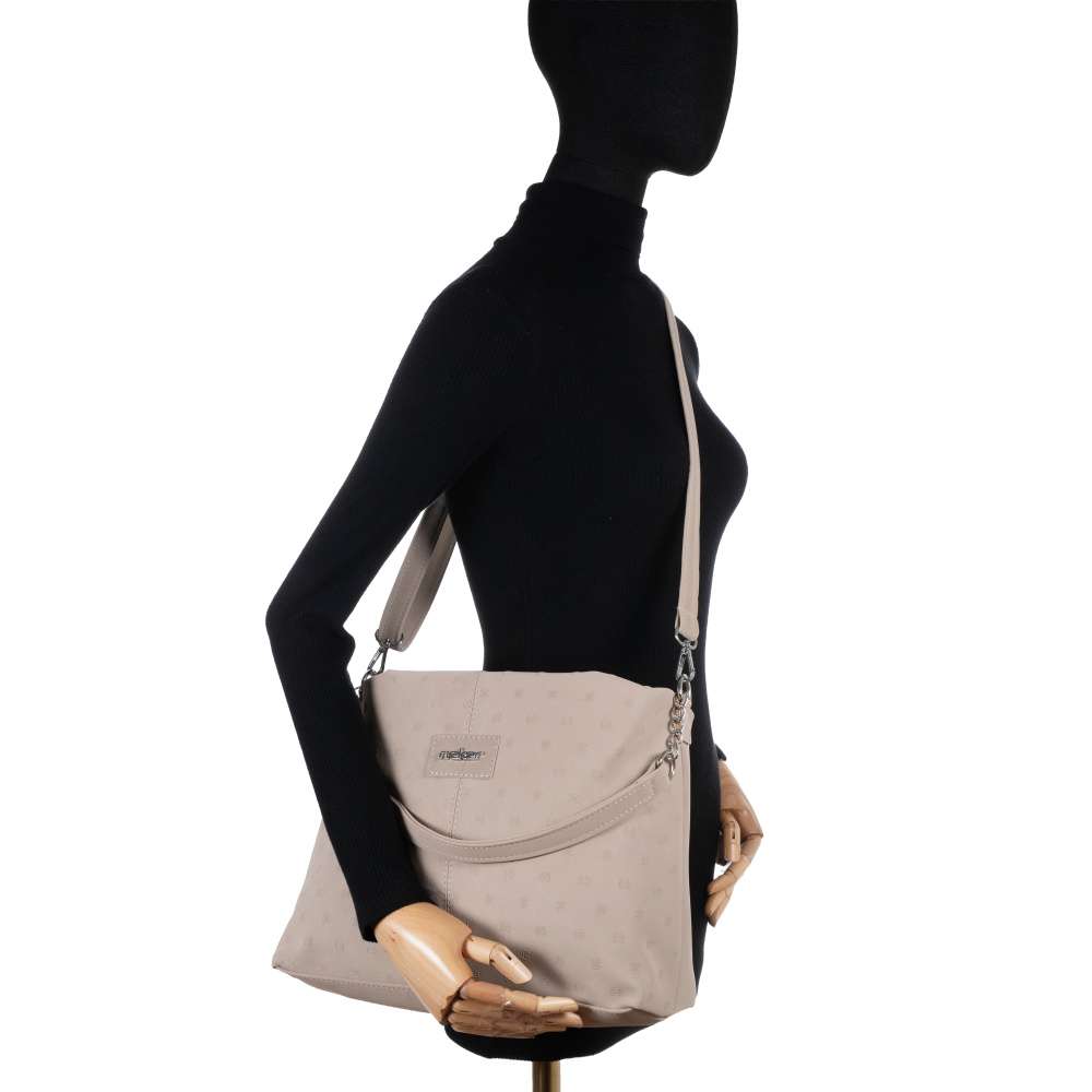 Tato kabelka značky RIEKER je ztělesněním jemného luxusu a nadčasové elegance. Béžový svršek je zdoben delikátním vzorem, který dodává výjimečný charakter a stříbrné logo značky podtrhuje prémiový původ. Kabelka je navržena s důrazem na každodenní komfort a praktičnost, aby vás doprovázela bez kompromisů. Zadní menší kapsička se zipem poskytne rychlý přístup k drobnostem, které chcete mít vždy po ruce. Vrchní zip bezpečně uzavírá vnitřní prostor, který je přehledně rozdělen středovou kapsičkou se zipem. V každé části najdete menší vnitřní kapsu, díky které zůstanou vaše osobní věci vždy uspořádány. O variabilitu nošení se starají dva popruhy – pevný popruh s elegantním řetízkem, který dodává kabelce ženský půvab, a odepínatelný, délkově nastavitelný popruh, díky kterému si můžete zvolit pohodlné nošení přes rameno nebo křížem přes tělo. Tento model RIEKER není jen praktickým doplňkem, ale elegantním společníkem, který vás bude doprovázet s lehkostí, sebevědomím a nádechem výjimečnosti každý den. Rozměry: cca V 25 cm x Š 31 cm x H 11 cm Vnitřní uspořádání: kabelka je dělená. Kabelka má délkově nastavitelný popruh, který lze odepnout. Maximální délka nastavitelného popruhu je cca 125 cm. Délka popruhu pro nošení přes rameno je cca 50 cm.