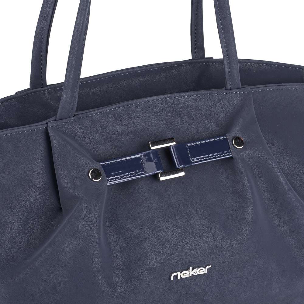 Nadčasový módní styl značky RIEKER se snoubí s elegancí v této vyjímečné kabelce, která zaujme na první pohled. Tmavě modrý svršek působí sofistikovaně a je doplněn výraznou dekorativní aplikací spolu s logem značky ve stříbrné barvě, které dodávají modelu exkluzivní charakter. Promyšleně řešený a prostorný interiér nabízí dostatek místa pro všechny vaše nezbytnosti a je vybaven dvěma menšími kapsami – jedna se zipem a druhá otevřená pro rychlý přístup k uloženým věcem. Praktická zadní kapsa se zipem podtrhuje funkčnost kabelky, zatímco variabilní možnosti nošení zajišťují maximální pohodlí. Dva pevné úchyty umožňují elegantní nošení a odnímatelný, délkově nastavitelný popruh poskytuje svobodu pohybu při každodenním nošení. Tato kabelka RIEKER je ideálním doplňkem pro ženy, které hledají spojení luxusního vzhledu, funkčnosti a nadčasového designu.