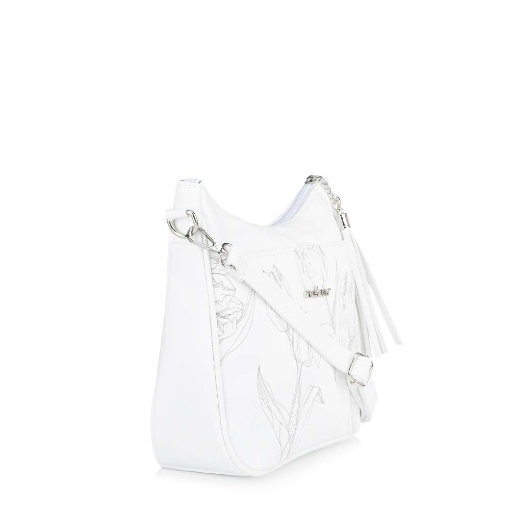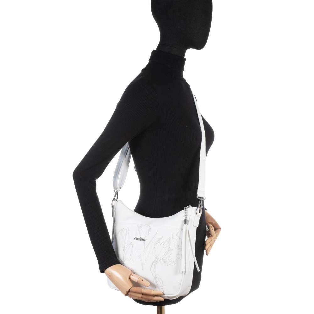 Kabelka RIEKER okouzlí jemným ženským půvabem, který podtrhuje harmonická kombinace bílého materiálu s jedinečným vzorem tulipánů. Tento květinový motiv vnáší do modelu svěžest a stříbrné logo značky působí jako jemný šperk, který kabelce dodává punc originality. Hravá aplikace na zipu hlavního zapínání je originálním detailem, který je navíc praktickým pomocníkem při otevírání hlavního prostoru. Odepnutím se odhalí prakticky řešený prostor se dvěma menšími kapsičkami, díky kterým budete mít své nezbytnosti vždy přehledně uspořádány. Přední kapsička s magnetickým klipem umožňuje rychlý přístup k drobnostem, zatímco zadní zipová kapsa poskytuje bezpečné místo pro cennosti. O pohodlí při nošení se stará délkově nastavitelný popruh, který si můžete přizpůsobit podle svých potřeb - ať už preferujete nošení přes rameno nebo stylově křížem skrz tělo. Tato kabelka RIEKER je víc než jen doplněk – je stylovým společníkem, který dokonale doplní městský outfit, pracovní look i volnočasové kombinace.