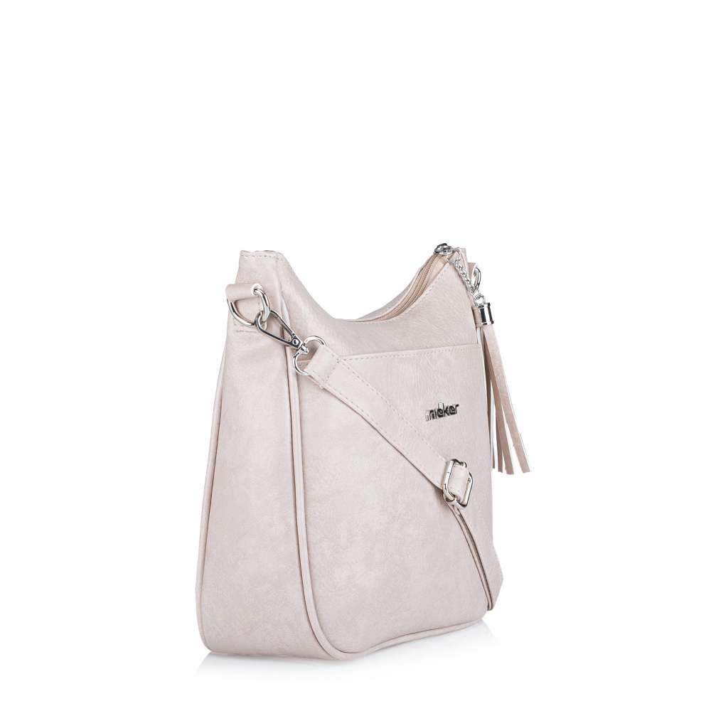 Nechte se okouzlit kabelkou značky Rieker, která dokonale vystihuje spojení moderního stylu a praktičnosti. Jemné linie na béžovém svršku spolu se stříbrným logem značky vytvářejí harmonický vzhled, který působí nenápadně, ale zároveň velmi stylově. Hravá aplikace na zipu hlavního zapínání je originálním detailem, který je navíc praktickým pomocníkem při otevírání hlavního prostoru. Odepnutím se odhalí prakticky řešený prostor se dvěma menšími kapsičkami, díky kterým budete mít své nezbytnosti vždy přehledně uspořádány. Přední kapsička s magnetickým klipem umožňuje rychlý přístup k drobnostem, zatímco zadní zipová kapsa poskytuje bezpečné místo pro cennosti. Odepínatelný a délkově nastavitelný popruh zaručuje pohodlné nošení podle vašich potřeb a stylu. Díky své kombinaci univerzálního vzhledu a praktických prvků je tato kabelka RIEKER ideálním společníkem pro procházky městem, do práce či volnočasové aktivity.