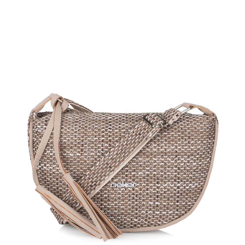 Kabelka Rieker přináší výjimečný pocit stylu už na první pohled. Originální textilní svršek s výraznou strukturou v sobě nese jemnou hru barev, které spolu s hladkým materiálem po obvodu vytváří harmonický celek. Stříbrné logo značky na přední straně podtrhuje originalitu kabelky a výrazná odnímatelná aplikace může kabelku zvýraznit, jindy ji nechat vyniknout v čisté eleganci. Praktické řešení nabízí vrchní zip, který otevírá interiér se dvěma vnitřními přihrádkami – uzavíratelnou na zip a otevřenou pro rychlý přístup k drobnostem. Na zadní straně se nachází další kapsa se zipem pro bezpečné uložení věcí, které potřebujete mít vždy po ruce. Komfort při nošení zajišťuje nastavitelný popruh, díky kterému si kabelku můžete přizpůsobit přesně podle svých potřeb. Tento model Rieker spojuje atraktivní design s praktickým využitím a je ideální volbou pro ženy, které chtějí vypadat stylově a mít své věci vždy přehledně uspořádané.