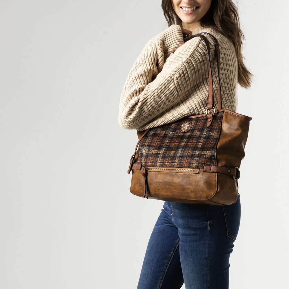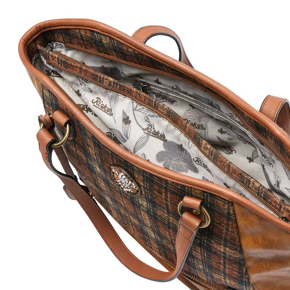 Dámská kabelka Rieker v zajímavé kombinaci barev je uprostřed ozvláštněna károvanou částí. Na přední straně je kapsička se zipem a zdobné logo Rieker, které je i na visacím řemínku. Kabelky Rieker nabízíme v naší kolekci k obuvi jako skvělý doplněk.