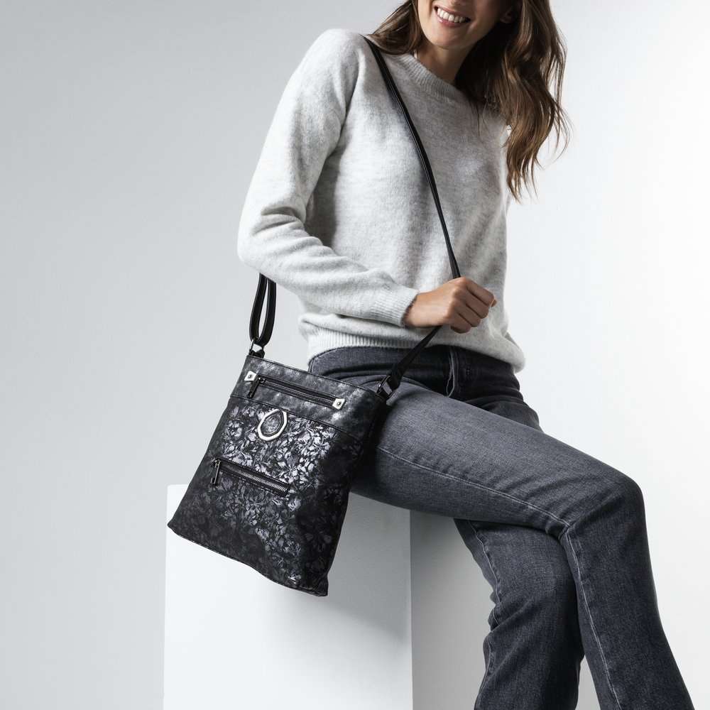 Dámská kabelka s květinovým potiskem a stříbrnými odlesky, značky RIEKER.