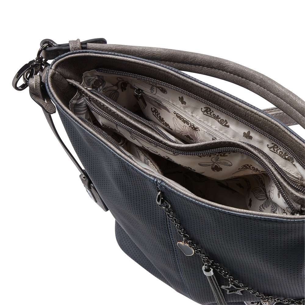 Stylová dámská kabelka značky RIEKER zaručeně doplní Vaše outfity na procházkách městem. Svršek je doplněn na přední straně řetízkem s přívěsky a kovovým logem značky. Skvěle tuto kabelku využijete jak do města, tak do práce a nabízíme je ve dvou barevných provedeních.