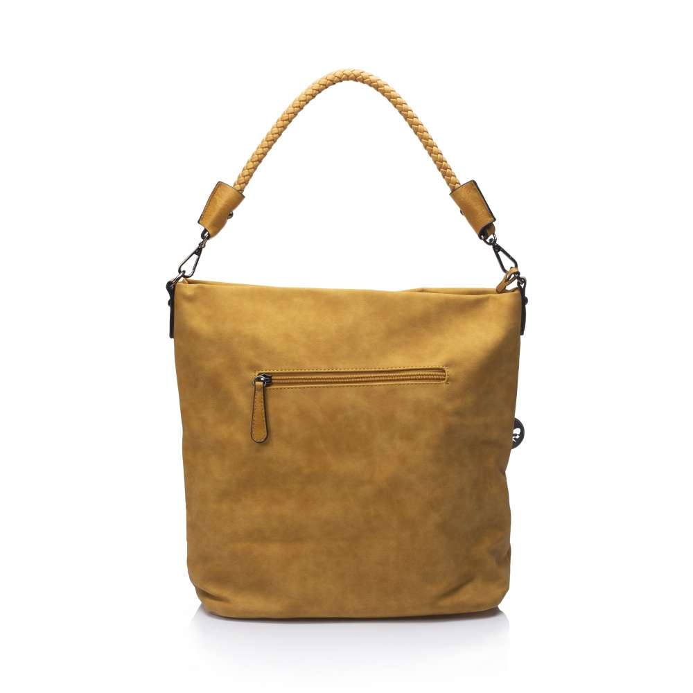 U horního okraje má taška zip, po jehož rozepnutí se otevře vnitřní kapsa, kde na jedné straně je kapsa na zip a na druhé pak na mobil a třetí univerzální. V zadní části je menší kapsa na zip.