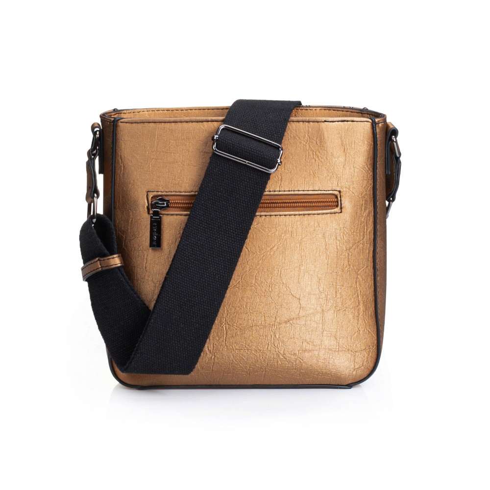 Tato dámská kabelka ve stylu crossbody má svršek v krásné metalické hnědé barvě. Vyniká stylovým prošitím černou nití a nápisem z přední strany. Také Vám může přijít vhod malá kapsička pro drobnosti v zadní části.