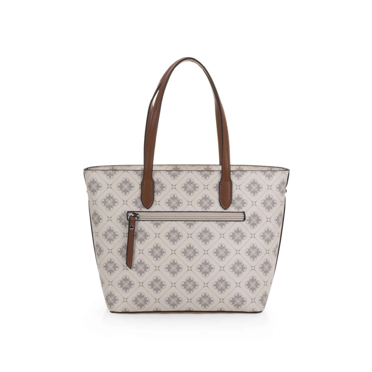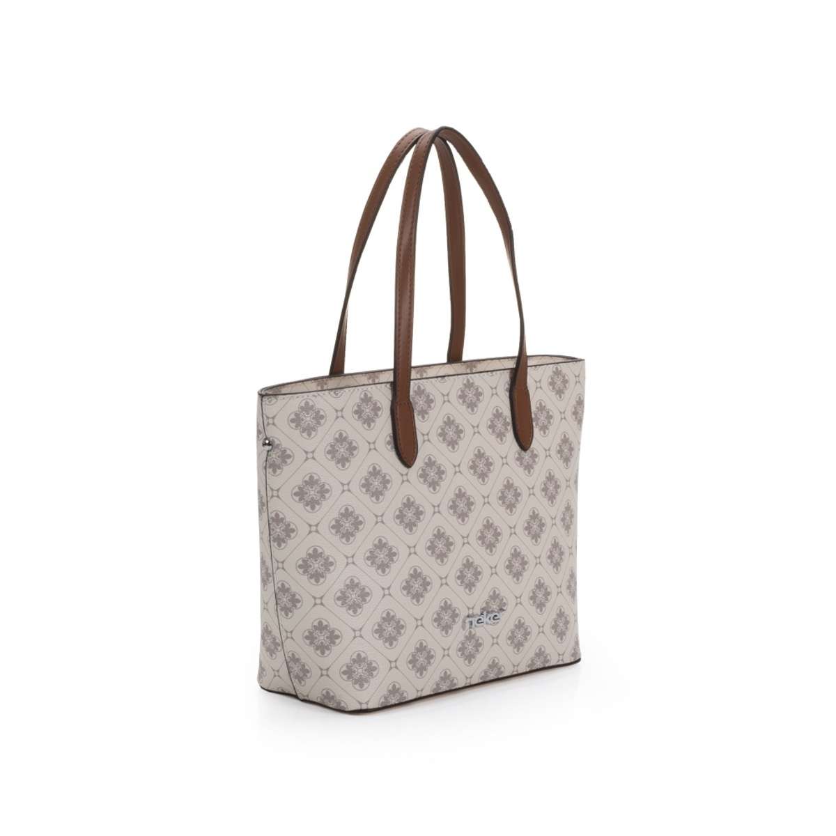 Tato dámská kabelka v béžové barvě je obohacena hnědými detaily. Oblíbíte si příjemný materiál a zaujme Vás také svým kontrastním elegantním vzorem. Ze zadní strany Vás jistě potěší malá kapsička pro drobnosti.