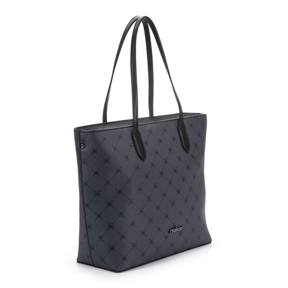 Tato velká dámská kabelka od značky Rieker má svršek z jemně hrubšího materiálu v tmavě šedé barvě. Na první pohled Vás zaujme svým jemným elegantním vzorem a černými detaily. Ze zadní strany Vás určitě potěší malá kapsička sloužící k uložení různých drobnosti. Uzavírá se zipem, po jehož rozepnutí se Vám nabízí několik dalších kapes například na mobil nebo klíče. Má dvě ucha, ale také ramenní popruh, který si můžete nastavit na Vámi zvolenou délku či jej odepnout. Poslouží Vám jako skvělý doplněk do města na nakupování s kamarádkou. Rozměry: cca v 29 cm x š 39 cm Vnitřní uspořádání: kabelka není dělená Kabelka má délkově nastavitelný popruh, který lze odepnout.