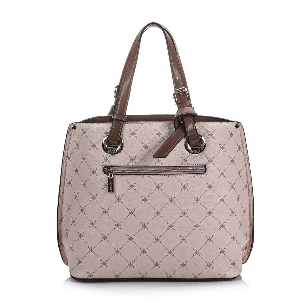 Tato dámská kabelka růžové barvy od značky Rieker zaujme především decentním vzorem a kovovými kroužky s provlečenými uchy. Ze zadní strany Vás určitě potěší malá kapsička sloužící k uložení různých drobnosti. Uzavírá se zipem, po jehož rozepnutí se Vám nabízí několik dalších kapes například na mobil nebo klíče. Má dvě ucha, ale také ramenní popruh, který si můžete nastavit na Vámi zvolenou délku či jej odepnout. Krásně doplní Vaše outfity, proto neváhejte, a dopřejte si tento skvělý kousek. Rozměry: cca v 27 cm x š 34 cm Vnitřní uspořádání: kabelka není dělená Kabelka má délkově nastavitelný popruh, který lze odepnout.