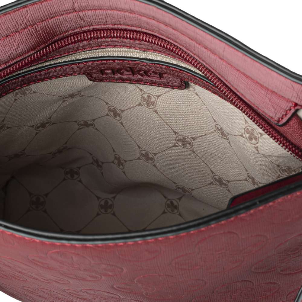 Dámská kabelka v oblíbeném stylu crossbody je od značky Rieker a má svršek v tmavě červené barvě, který je dozdoben vytlačeným vzorem. Ze zadní strany Vás jistě potěší kapsička pro drobnosti. Uzavírá se zipem, po jehož rozepnutí naleznete několik dalších kapes například pro Váš mobil a klíče. Má širší popruh ideální na nošení přes rameno, který si můžete nastavit na Vámi zvolenou délku či jej odepnout. S tímto skvělým kouskem zaujmete už na první pohled.