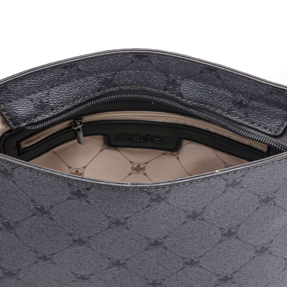 Vkusně vzorovaná crossbody kabelka s decentním logem značky Rieker na vnější straně doplní každý z Vašich outfitů. Svrchní materiál je vyroben z kvalitního oblázkového materiálu a ozdoben tmavými lemy po krajích. Uzavírá se funkčním zipem, po jehož rozepnutí naleznete prostor s kapsičkami na Vaše drobnosti. Můžete ji nosit přes rameno a upravit velikostně podle Vašich představ, díky délkově nastavitelnému popruhu. Tento model bude vypadat například skvěle ke kotníkovým botám z naší široké nabídky.