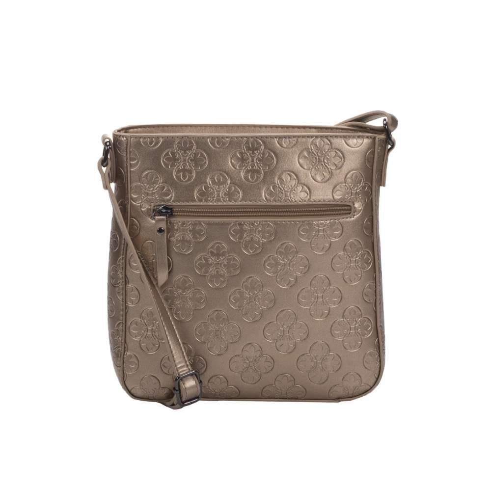 Tato dámská crossbody kabelka od značky Rieker má krásný svršek v hnědé barvě, který je navíc obohacen vytlačeným vzorem. Ze zadní strany Vás jistě potěší kapsička pro drobnosti. Uzavírá se zipem, po jehož rozepnutí naleznete několik dalších kapes například pro Váš mobil a klíče. Má délkově nastavitelný popruh ideální na nošení přes rameno. Tato kabelka se jistě stane oblíbeným doplňkem každé z Vás. Rozměry: cca v 24 cm x š 24 cm Vnitřní uspořádání: kabelka není dělená. Kabelka má délkově nastavitelný popruh.