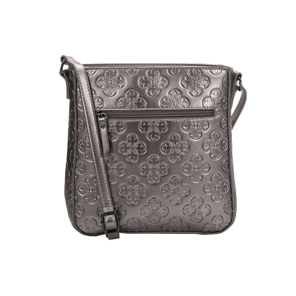 Tato dámská crossbody kabelka od značky Rieker má krásný svršek v šedé barvě, který je navíc obohacen vytlačeným vzorem. Ze zadní strany Vás jistě potěší kapsička pro drobnosti. Uzavírá se zipem, po jehož rozepnutí naleznete několik dalších kapes například pro Váš mobil a klíče. Má délkově nastavitelný popruh ideální na nošení přes rameno. Tato kabelka se jistě stane oblíbeným doplňkem každé z Vás. Rozměry: cca v 24 cm x š 24 cm Vnitřní uspořádání: kabelka není dělená. Kabelka má délkově nastavitelný popruh.
