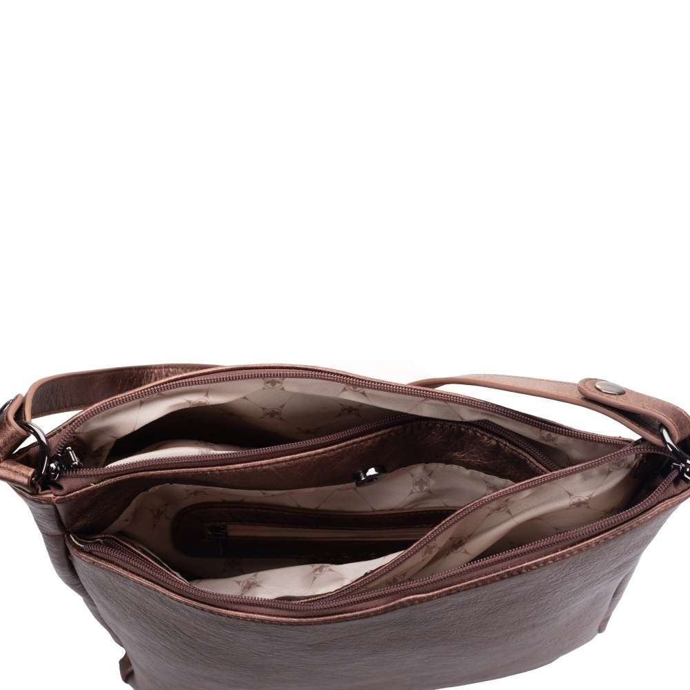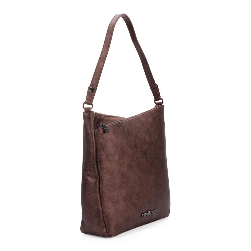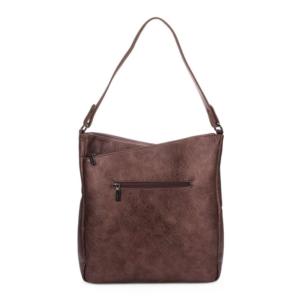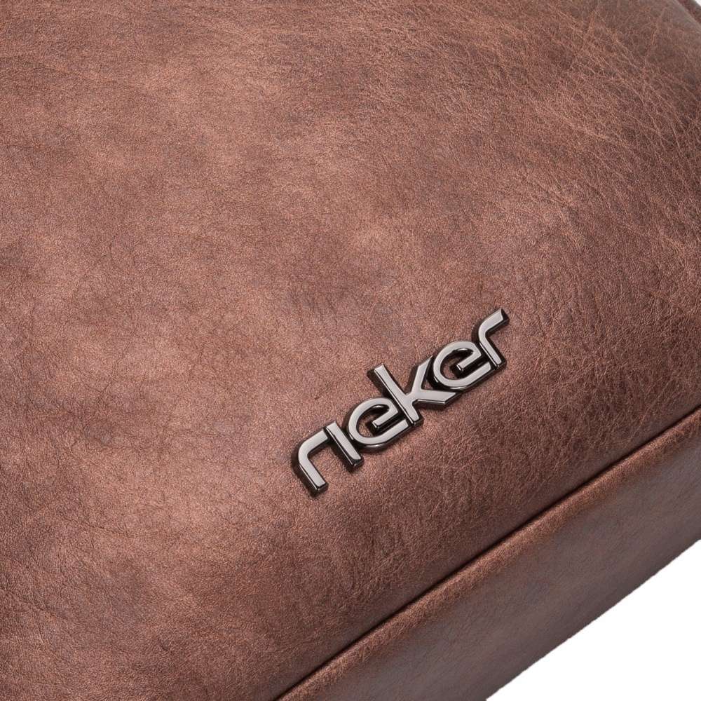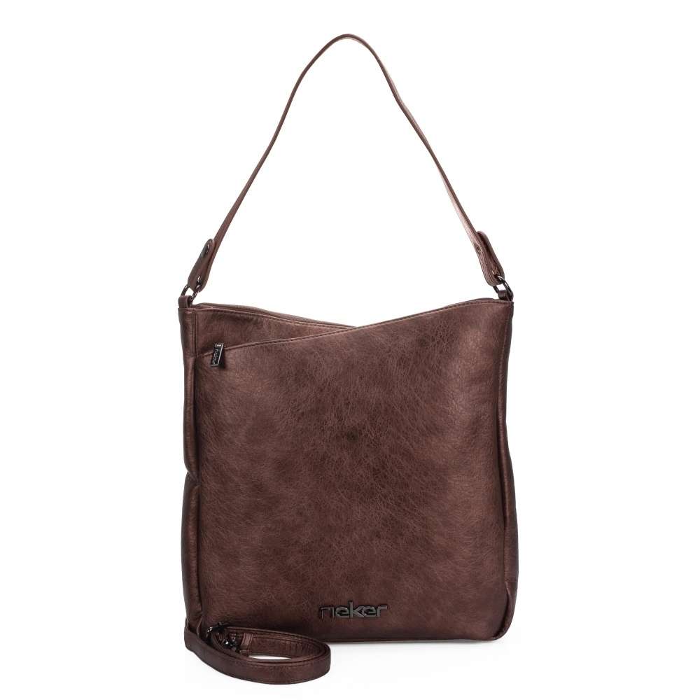 Udělejte si radost a dopřejte si tuto dámskou kabelku značky Rieker, která je v metalické hnědé barvě v módním střihu. Ze zadní strany Vás jistě potěší malá kapsička pro drobnosti. Taška má tři hlavní úschovné kapsy, kde prostřední se uzavírá na magnetický klip a boční na zipy. Má ucho, ale také ramenní popruh, který si můžete nastavit na Vámi zvolenou délku či jej odepnout. Tento krásný model se rozhodně stane Vašim oblíbeným doplňkem.