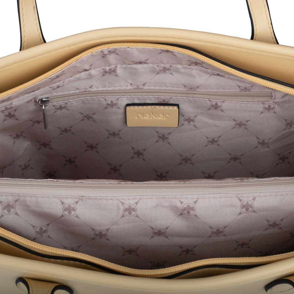 Detailní informace Tato dámská kabelka značky Rieker klasického střihu bude Vašim skvělým společníkem. Svršek ve veselé barvě je zdoben z vnější strany vytlačeným logem značky Rieker a přívěskem rovněž s logem této značky. Na vnitřní straně se nachází malinká všitá kapsička uzavíratelná na zip. Kabelka je uzavíratelná zipem, po jehož rozepnutí se otevře hlavní rozdělená kapsa s nádhernou podšívkou s dalšími kapsičkami na všechny Vaše cennosti. Tento model má dvě ucha pro pohodlné držení v ruce, a také dlouhý délkově nastavitelný popruh, který lze odepnout. S touto kabelkou doladíte každý outfit do města i do práce.