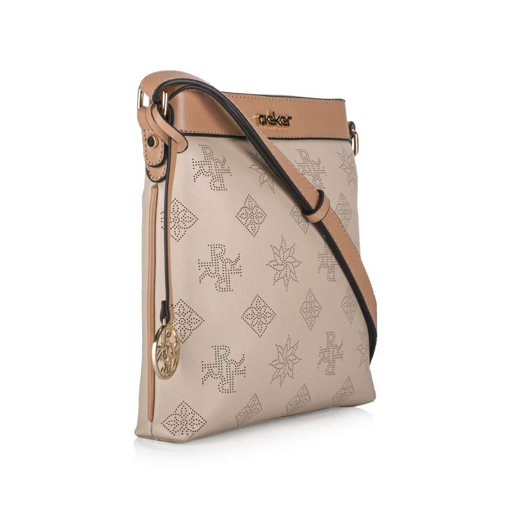 Nepřehlédnutelná dámská crossbody značky RIEKER, která nesmí chybět ve Vašem šatníku. Originální svršek má na sobě designové vzory a loga značky. Kabelka má na zadní straně malou kapsičku pro drobnosti a jednu velkou, kde najdeme další dvě kapsičky, z toho jedna je na zip. U dlouhého nastavitelného popruhu je krásná ozdoba, kterou můžete kdykoliv sundat. Tento model bude Váš každodenní společník. Rozměry: cca V 22,5 cm x Š 22,5 cm Vnitřní uspořádání: Kabelka není dělená / Kabelka má nastavitelný popruh