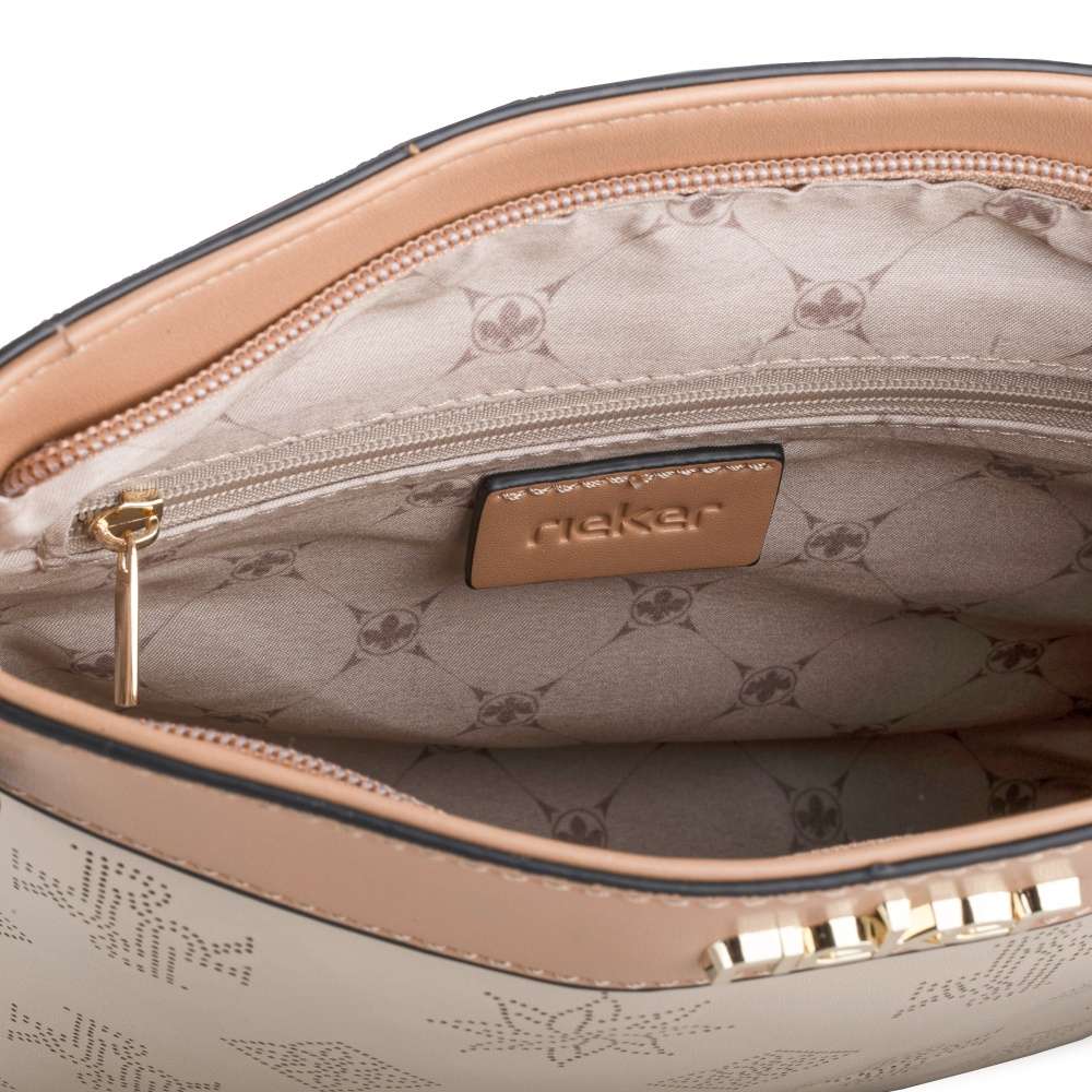 Detailní informace Nepřehlédnutelná dámská crossbody značky RIEKER, která nesmí chybět ve Vašem šatníku. Originální svršek má na sobě designové vzory a loga značky. Kabelka má na zadní straně malou kapsičku pro drobnosti a jednu velkou, kde najdeme další dvě kapsičky, z toho jedna je na zip. U dlouhého nastavitelného popruhu je krásná ozdoba, kterou můžete kdykoliv sundat. Tento model bude Váš každodenní společník.