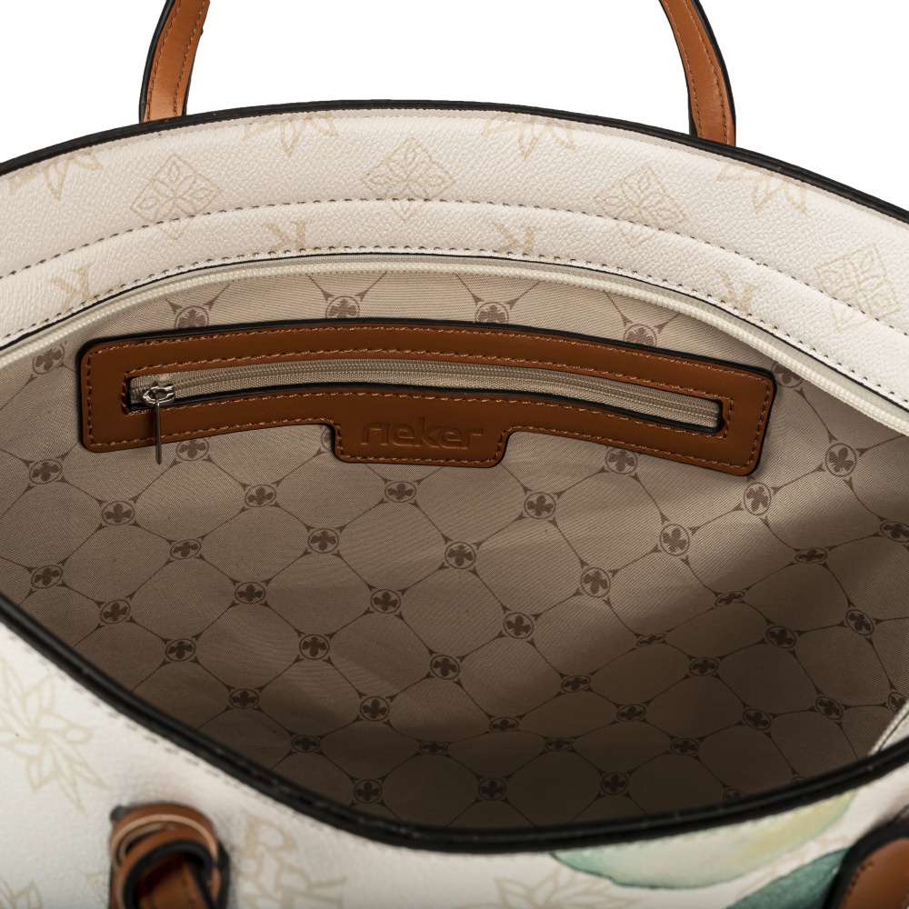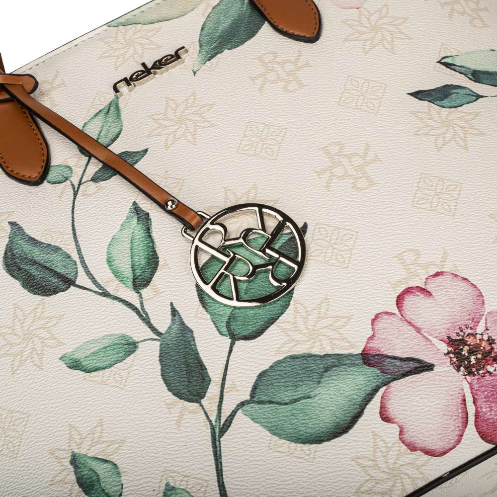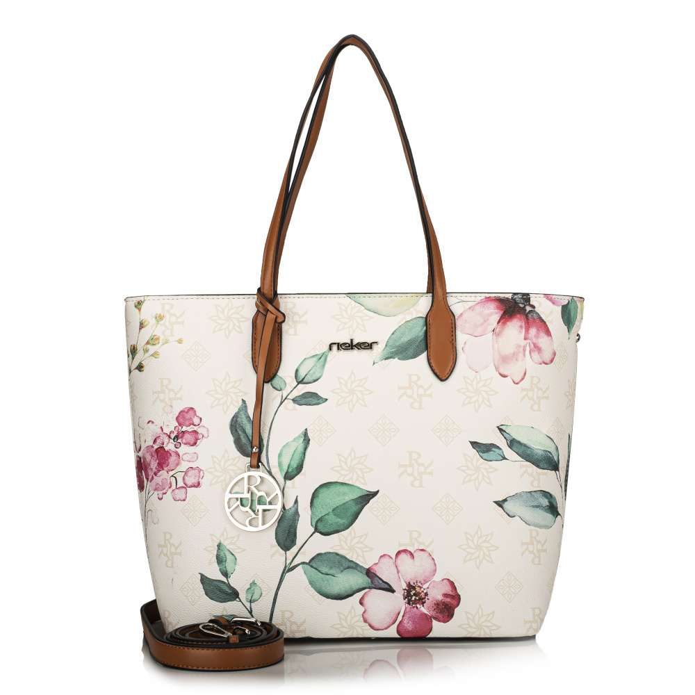 Úžasná dámská kabelka značky RIEKER, která upoutá pozornost na první pohled. Svršek má na sobě krásné letní vzory, díky kterým budete vypadat sebevědomě a naladěně na slunečné počasí. Tašku doplňuje ozdoba s logem na uchu, kterou můžete kdykoliv sundat. Na vrchní straně je hlavní uzavíratelná kapsa na zip, po jejím otevření jsou zde další tři kapsičky. Na zadní straně kabelky je taktéž malá kapsa na zip, pro Vaše drobnosti. Shopperku můžete nosit v ruce, nebo si dát přes rameno díky nastavitelnému popruhu. Rozměry: cca V 29 cm x Š 40 cm Vnitřní uspořádání: Kabelka není dělená / Kabelka má délkově nastavitelný popruh, který lze odepnout.