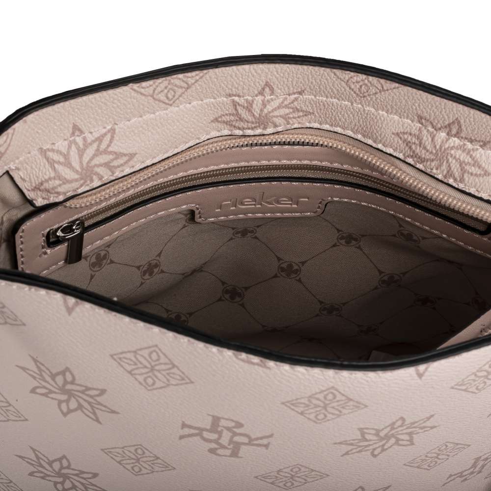 Dámská taška přes rameno značky RIEKER, je to pravé, co potřebuje žena ve svém šatníku. Na svršku jsou ozdoby s logem značky a květinek, které spolu utváří krásnou kombinaci. Když z vrchní strany rozepneme zip, objeví se zde dvě malé kapsičky. Jedna je bez uzavírání, druhá je na zip, ideální na doklady, nebo klíče. Na zadní straně kabelky je též kapsa na zip. Crossbody bude vhodným společníkem na procházky v parku, do kina, nebo na kafíčko s přáteli.