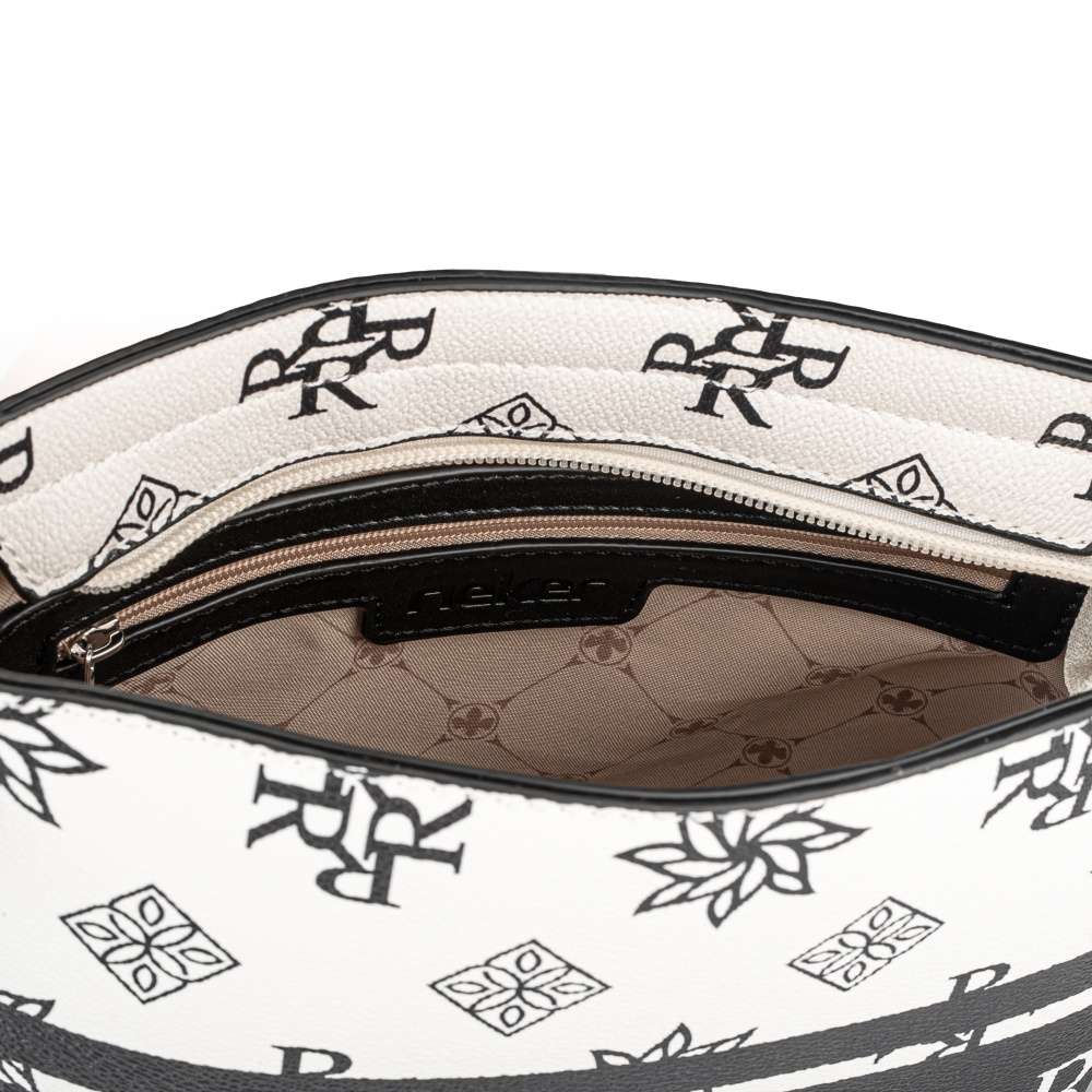 Dámská crossbody značky RIEKER, je to pravé, co potřebuje každá žena ve svém šatníku. Na svršku je viditelné logo značky, které dodává originální design. Na vrchní části je kapsa na zip, kdy se při jejím otevření ukážou další dvě menší kapsičky. Jedna je na zip, druhá bez uzavírání. K taštičce je nastavitelný popruh. Nahoďte sukni, sluneční brýle a můžete vyrazit.