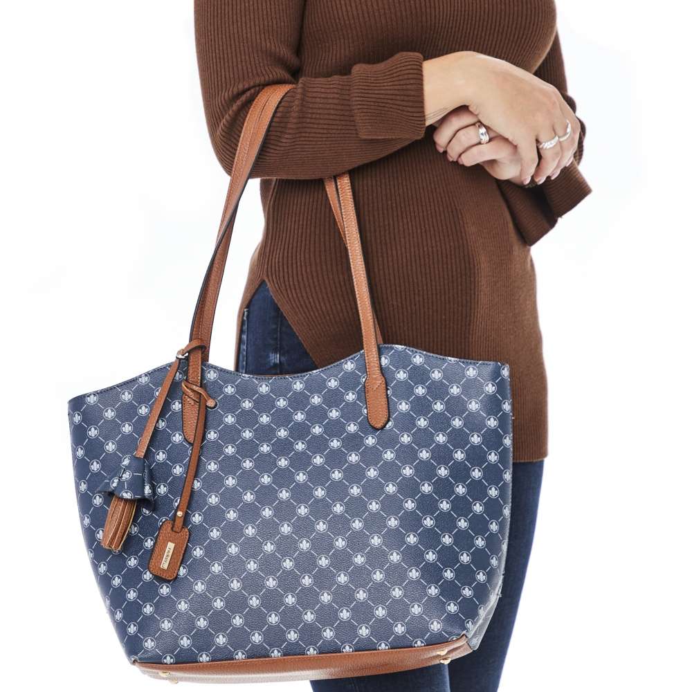 Dámská kabelka elegantního módního střihu značky Rieker Vám bude díky svému vzhledu skvělým společníkem v jarních i letních dnech. Hladký svršek je po celé své ploše dekorován malými logy Rieker. Jako dekorativní prvek se zde nachází také přívěšek, který je zdoben visačkou a malou třásní. Na zadním díle se nachází malá kapsička na drobnosti, uzavíratelná zipem s ladícím poutkem. Kabelka má vnitřní kapsu s nádhernou podšívkou, do které se Vám vejde vše, co u sebe zrovna potřebujete mít. Hlavní kapsa je doplněna po stranách o menší kapsičky na cennosti. Tento model má dvě ucha pro nošení v ruce i přes rameno, díky nimž se Vám bude pohodlně nosit i při delších pochůzkách městem. Rozměry: cca v 29 cm x š 42 cm Vnitřní uspořádání: Kabelka není dělená.