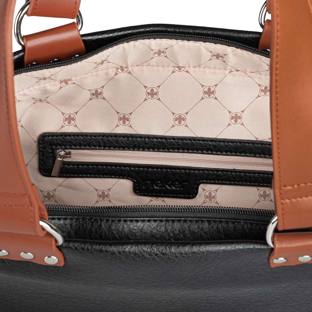 Detailní informace Tato kabelka od značky Rieker Vás bude doprovázet na každé cestě, kdy u sebe potřebujete mít vše potřebné a vypadat stylově. Svršek kabelky zdobí logo značky Rieker. Zadní strana disponuje malou všitou kapsičkou na zip, která je ideální například na uložení klíčů. Hlavní kapsa na zip po otevření nabízí menší kapsičky pro lepší organizaci Vašich drobností. Ucha kabelky v kontrastně hnědém odstínu společně s prvky po stranách dodávají kabelce na eleganci. Ať už vyrazíte za prací či za zábavou, budete mít šmrnc.
