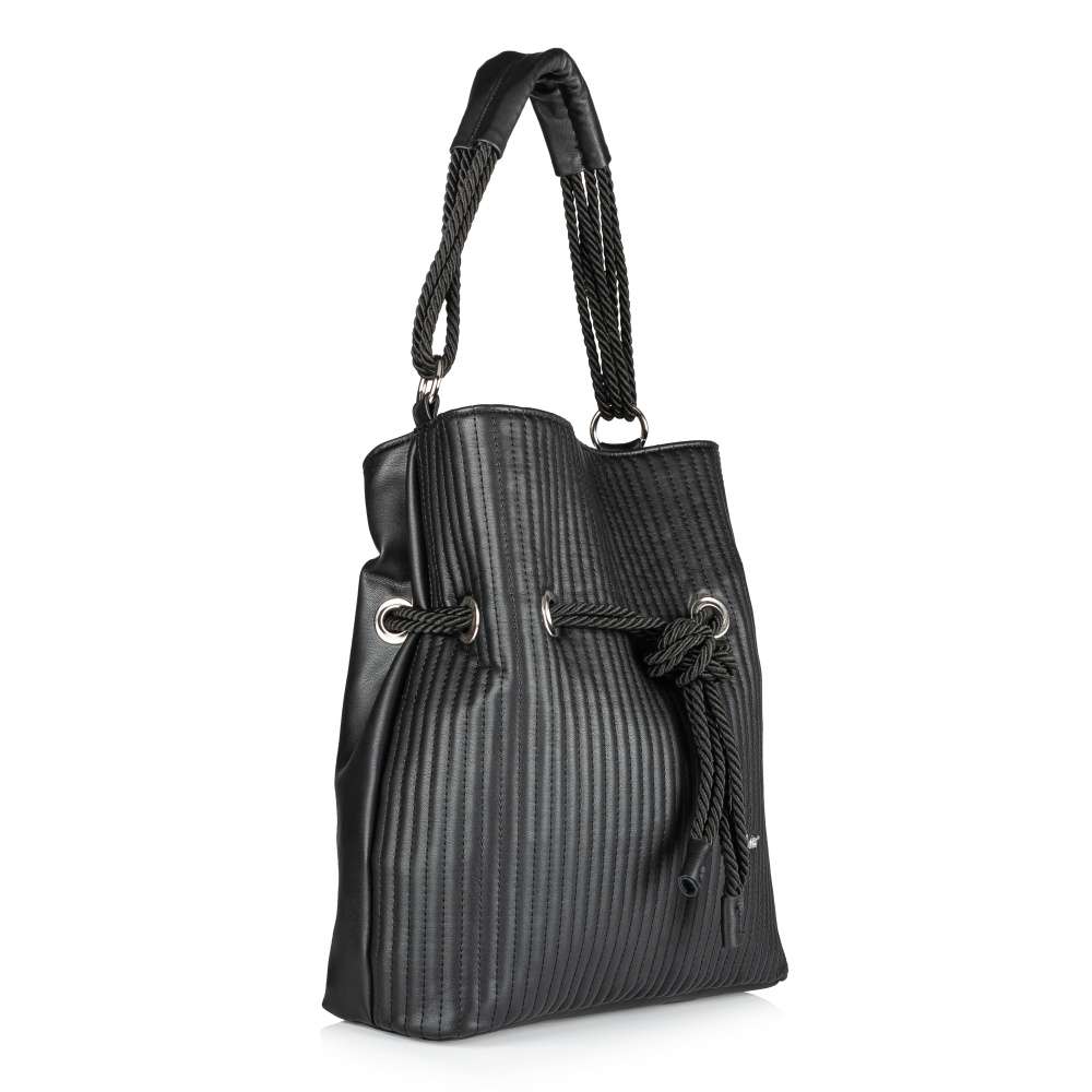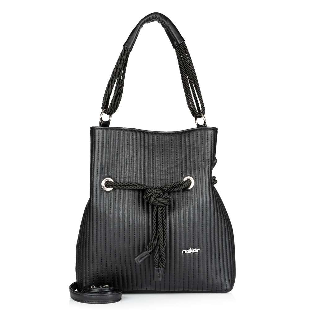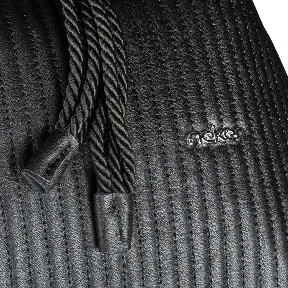 Tento stylový kousek od značky Rieker nesmí chybět ve Vaší sbírce kabelek. Černý svršek zdobí na přední straně jemné prošívání a logo značky Rieker. Na zadní straně se nachází menší všitá kapsička. Kabelku zdobí obepnuté provázky, které utváří celý její vzhled. Hlavní kapsa na zip je nedělená a disponuje menšími kapsičkami na Vaše drobnosti. Lze ji nosit přes rameno a díky délkově nastavitelnému, odepínatelnému popruhu i jako variantu crossbody. Ať už si ji vezmete do práce nebo na nákupy, budete vypadat stylově.