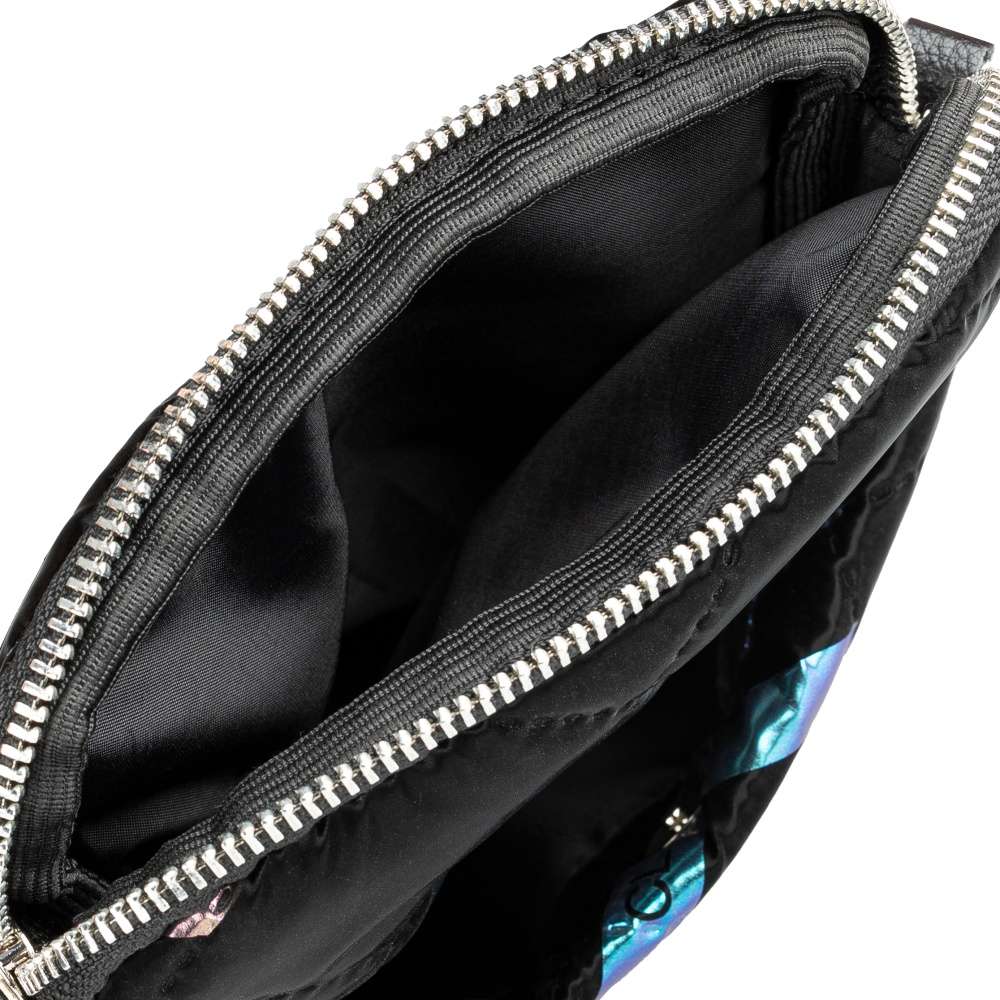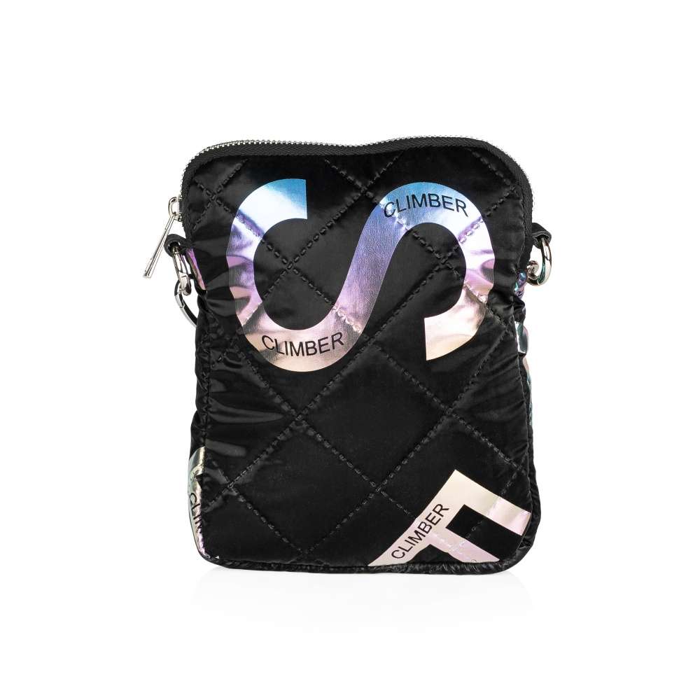 Na procházky parkem či společenské akce se vždy hodí menší crossbody kabelka. Svršek má černou barvu zdobenou holografickými vzory. Minimalistické prvky společně ladí stříbrnou barvou. Větší kapsa kabelky má uzavírání na zip a menší na magnetický klip. Jednoduchý vzhled této krásky se hodí k jakémukoli outfitu. Rozměry: cca v 21 cm x š 18 cm Vnitřní uspořádání: Kabelka není dělená. Kabelka má délkově nastavitelný popruh, který lze odepnout.