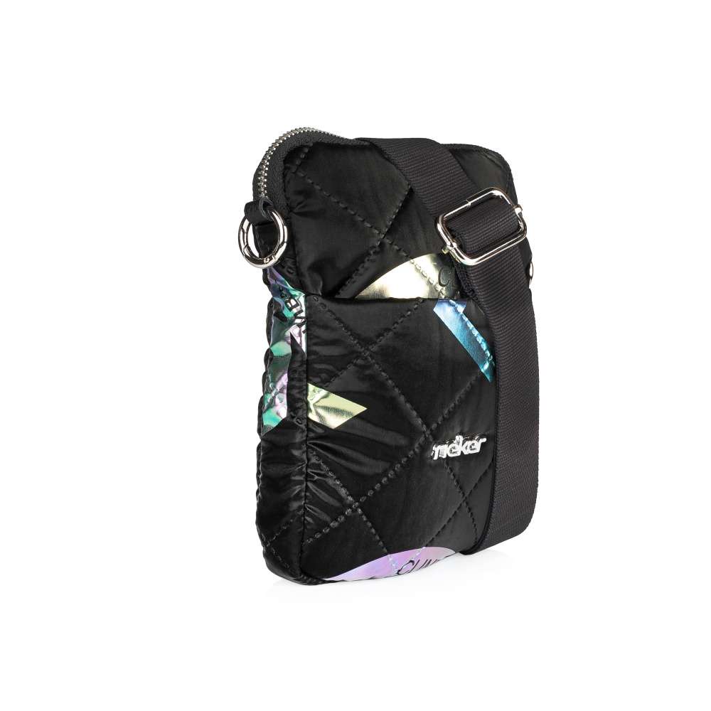 Detailní informace Na procházky parkem či společenské akce se vždy hodí menší crossbody kabelka. Svršek má černou barvu zdobenou holografickými vzory. Minimalistické prvky společně ladí stříbrnou barvou. Větší kapsa kabelky má uzavírání na zip a menší na magnetický klip. Jednoduchý vzhled této krásky se hodí k jakémukoli outfitu.