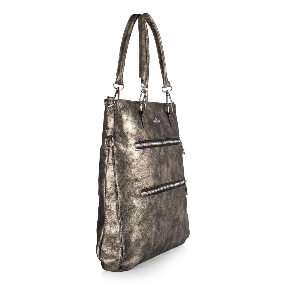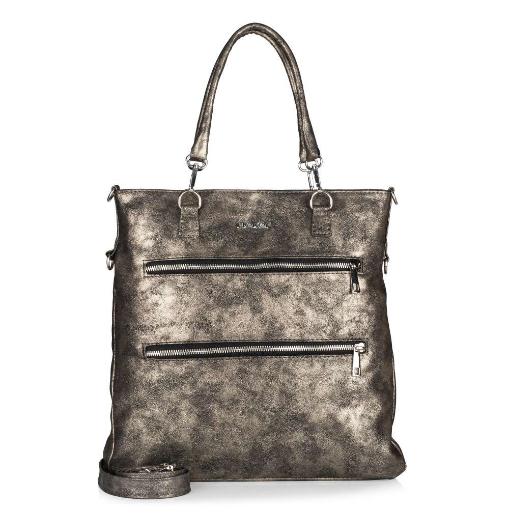 Tato kabelka od značky Rieker zaujme všechny ženy, které mají rády moderní vzhled. Svršek v zlatém provedení jednoduše dodá šmrnc každému outfitu. Na zadní straně nalezneme všitou kapsičku na zip, která skvěle poslouží například na klíče. Na přední straně se nachází dvě kapsičky na zip, které poslouží úložným místem a zároveň zkrášlují kabelku. Hlavní kapsa na zip poskytuje spoustu prostoru a disponuje navíc i menšími kapsičkami na Vaše drobnosti. Kabelku můžete nosit jak přes rameno, tak i jako variantu crossbody díky odepínatelnému popruhu. Ať už hledáte kabelku do práce nebo do města, můžete se na tento kousek spolehnout. Rozměry: cca v 35 cm x š 34 cm Vnitřní uspořádání: kabelka není dělená Kabelka má délkově nastavitelný popruh, který lze odepnout.