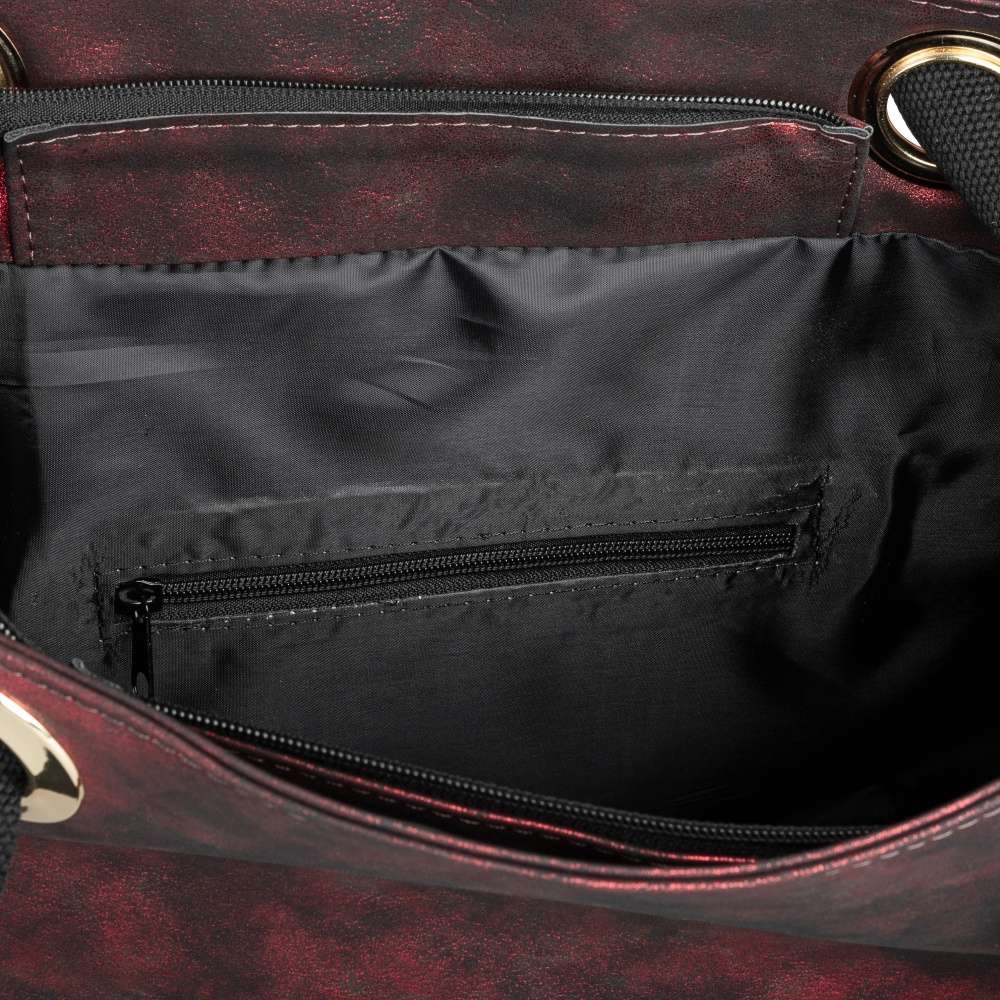 Tato dámská kabelka červené barvy od značky Rieker zaujme především svrškem vyrobeným z lesklého materiálu. Zdobným prvkem jsou zde také zlaté kroužky s provlečenými uchy. Ze zadní strany Vás určitě potěší malá kapsička sloužící k uložení různých drobnosti. Uzavírá se zipem, po jehož rozepnutí se Vám nabízí jedna velká kapsa s dvěma malými na mobil nebo klíče. Má dvě ucha, které jsou vypolstrovanáa bude se tak pohodlně nosit. Krásně doplní Vaše outfity, proto neváhejte, a dopřejte si tento skvělý kousek. Rozměry: cca v 34 cm x š 33 cm Vnitřní uspořádání: kabelka není dělená