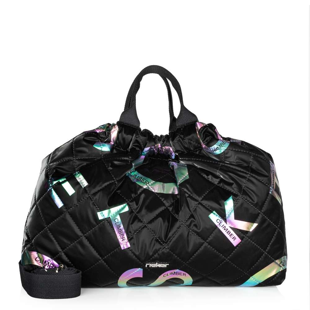Prostorný model od značky RIEKER, který se bude skvěle hodit na víkendové výlety nebo na městské pochůzky. Svrchní materiál v černé barvě je vkusně zdoben natištěnými písmeny a logem. Hlavní kapsa na magnetický klip navíc disponuje i menšími kapsičkami na Vaše drobnosti. Kabelku můžete nosit jak přes rameno, tak i jako variantu crossbody díky odepínatelnému popruhu. Rozměry: cca v 39 cm x š 42 cm Vnitřní uspořádání: kabelka není dělená Kabelka má délkově nastavitelný popruh, který lze odepnout.