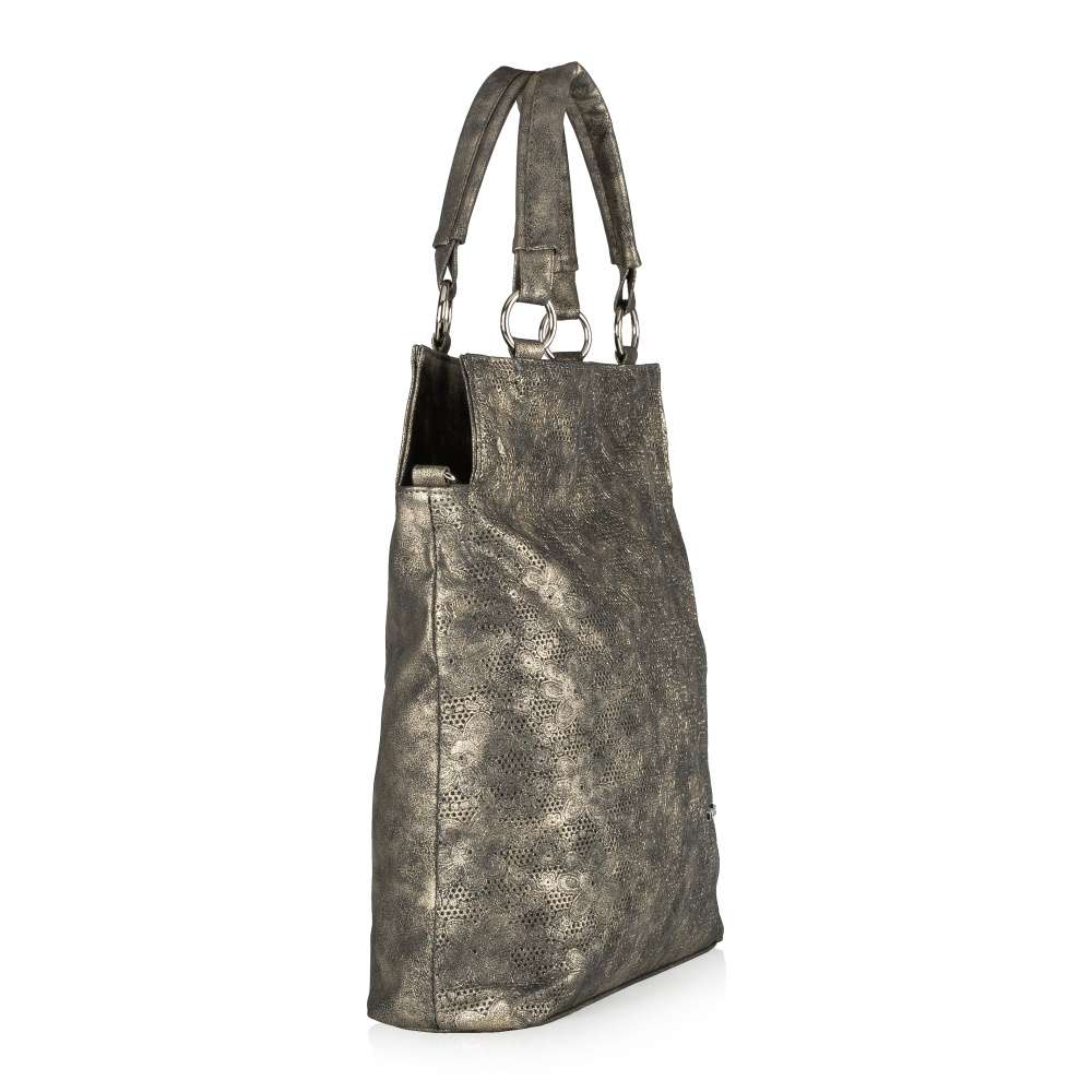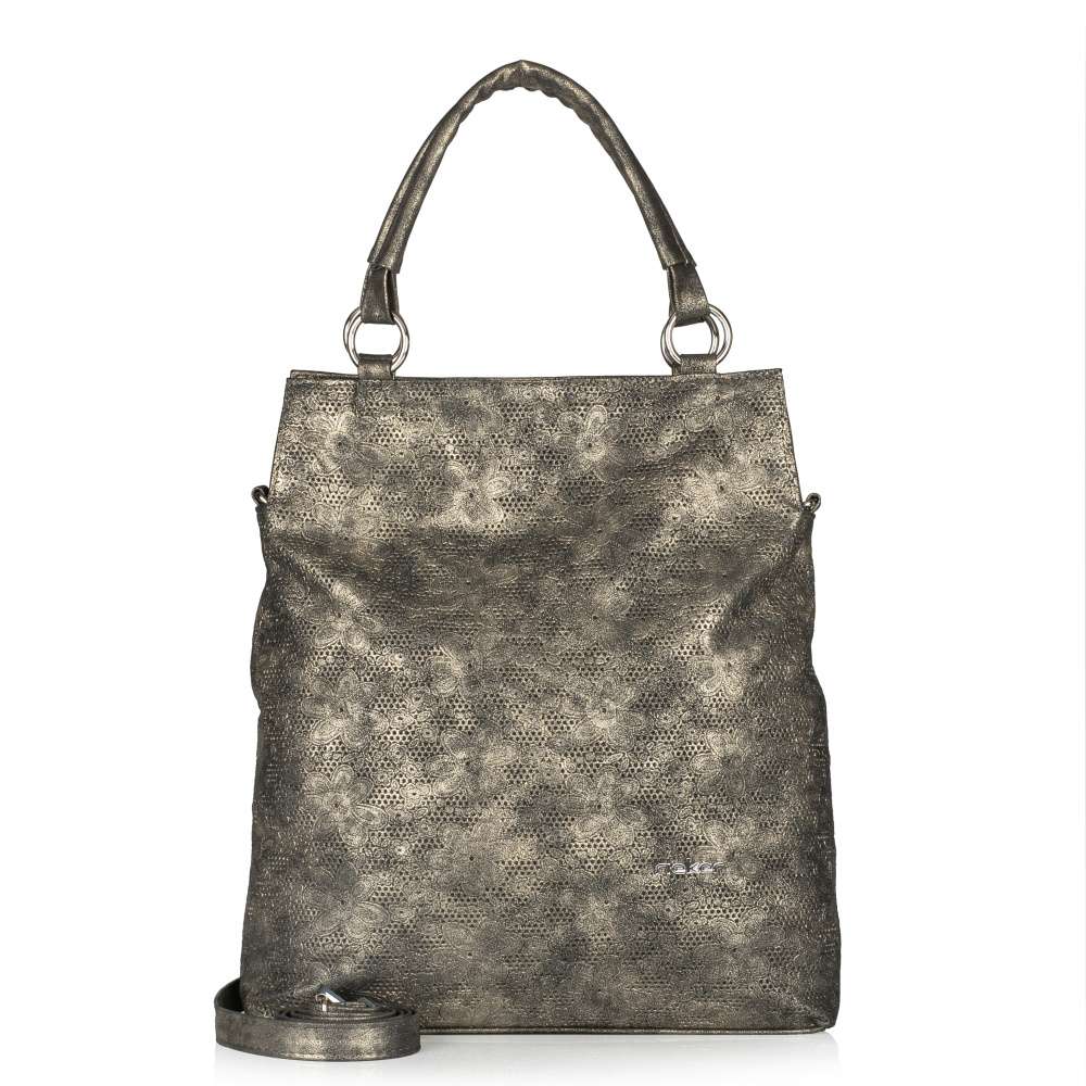 Tato kabelka od značky Rieker Vás bude doprovázet na každé cestě, kdy u sebe potřebujete mít vše potřebné a vypadat stylově. Metalický svršek utváří nevšední vzhled kabelky. Hlavní kapsa na zip po otevření nabízí menší kapsičky pro lepší organizaci Vašich drobností. Zadní strana nabízí prostor menší všitou kapsičkou na zip, která je ideální třeba na uložení klíčů. Pokud Vás omrzí nošení přes rameno, můžete využít varianty crossbody díky přiloženému odepínacímu popruhu. Ať už vyrazíte za prací či za zábavou, budete mít šmrnc. Rozměry: cca v 39 cm x š 33 cm Vnitřní uspořádání: kabelka není dělená Kabelka má délkově nastavitelný popruh, který lze odepnout. Maximální délka nastavitelného popruhu je cca 130 cm.
