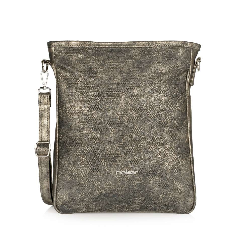 Krásná crossbody kabelka značky Rieker, která osvěží všechny Vaše outfity. Zlatavý svršek ve vzorování kytiček je z velmi příjemného materiálu, který je doplněn o logo značky. Hlavní kapsa disponuje menšími kapsičkami pro Vaše drobnosti. Na zadní straně se nachází menší všitá kapsička na zip. Tento model je perfektní volbou pro každodenní nošení. Rozměry: cca V 30 cm x Š 26 cm Vnitřní uspořádání: kabelka není dělená. Kabelka má délkově nastavitelný popruh, který lze odepnout. Maximální délka nastavitelného popruhu je cca 130 cm.