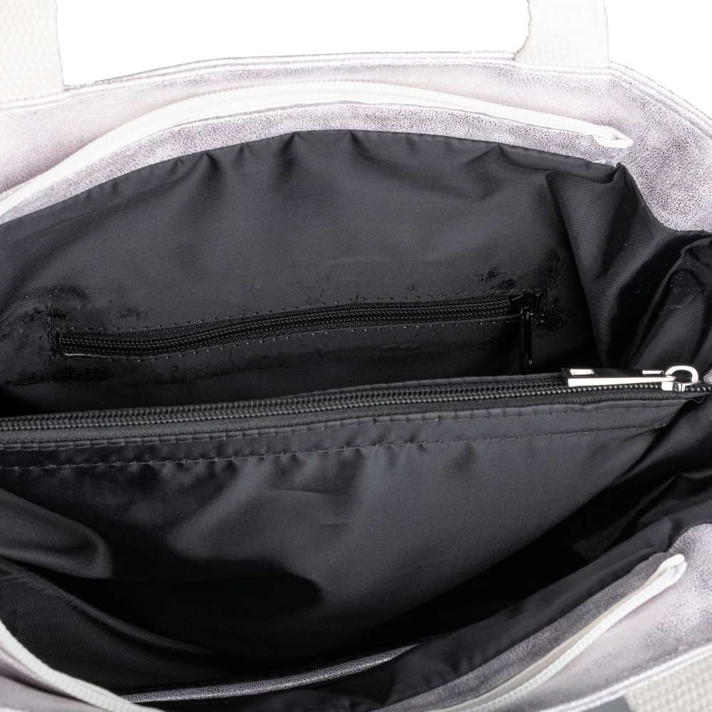 Tato kabelka od značky Rieker zaujme všechny ženy, které mají rády moderní vzhled. Svrchní materiál s designovým povrchem stříbrné barvy snadno sladíte s jakýmkoliv outfitem. Na zadní straně nalezneme všitou kapsičku na zip, která skvěle poslouží například na klíče. Na přední straně se vyjímá logo Rieker. Hlavní kapsa na zip je dělená a disponuje navíc i menšími kapsičkami na Vaše drobnosti. Kabelku můžete nosit jak přes rameno, tak i jako variantu crossbody díky odepínatelnému popruhu. Ať už hledáte kabelku do práce nebo do města, můžete se na tento kousek spolehnout.