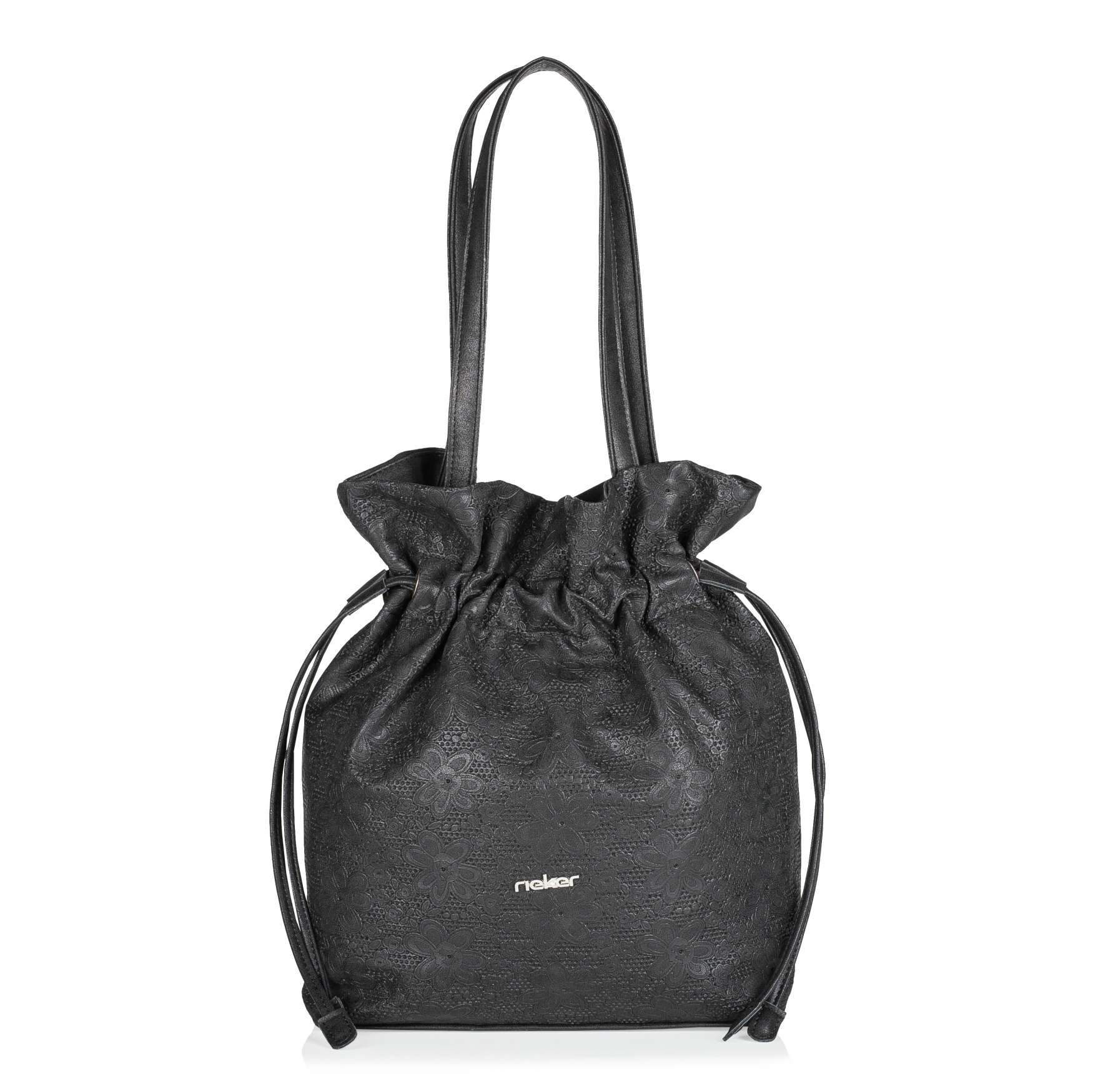 Dámská kabelka značky RIEKER, jejíž nošení bude šperkem Vašeho vzhledu. Svršek zdobí logo značky a boční stahovací pásky pro upravení kabelky do tvaru měšce. Po otevření hlavní kapsy uvidíme další dvě malé kapsičky, kde si můžeme dát klíče nebo doklady. Velká kapsa je dostatečně prostorná pro všechny nezbytné věci. Kabelka má dva popruhy pro pohodlné nošení přes rameno. Tento model si zamilujete na první pohled.