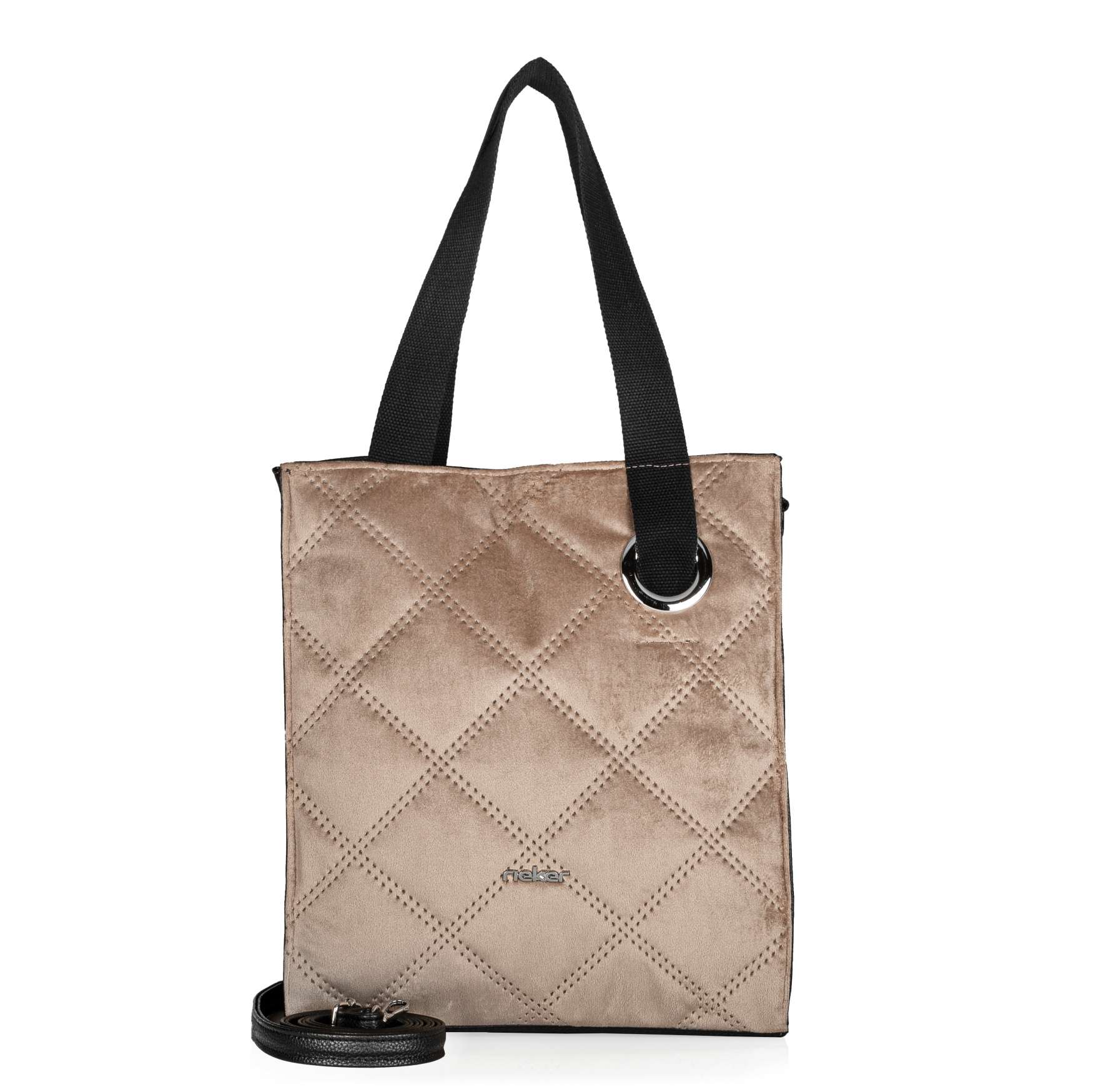 Tato kabelka od značky Rieker zaujme všechny ženy, které mají rády moderní vzhled. Svrchní materiál je dvojitě prošitý a vyrobený ze sametově jemného materiálu. Na zadní straně nalezneme všitou kapsičku na zip, která skvěle poslouží například na klíče. Na přední straně se vyjímá logo Rieker. Hlavní kapsa na zip je dělená a disponuje navíc i menšími kapsičkami na Vaše drobnosti. Kabelku můžete nosit jak přes rameno, tak i jako variantu crossbody díky odepínatelnému popruhu. Ať už hledáte kabelku do práce nebo do města, můžete se na tento kousek spolehnout. Rozměry: cca v 35 cm x š 31,5 cm Vnitřní uspořádání: kabelka je dělená Kabelka má délkově nastavitelný popruh, který lze odepnout. Maximální délka nastavitelného popruhu je cca 125 cm. Délka popruhu pro nošení přes rameno je cca 55 cm.
