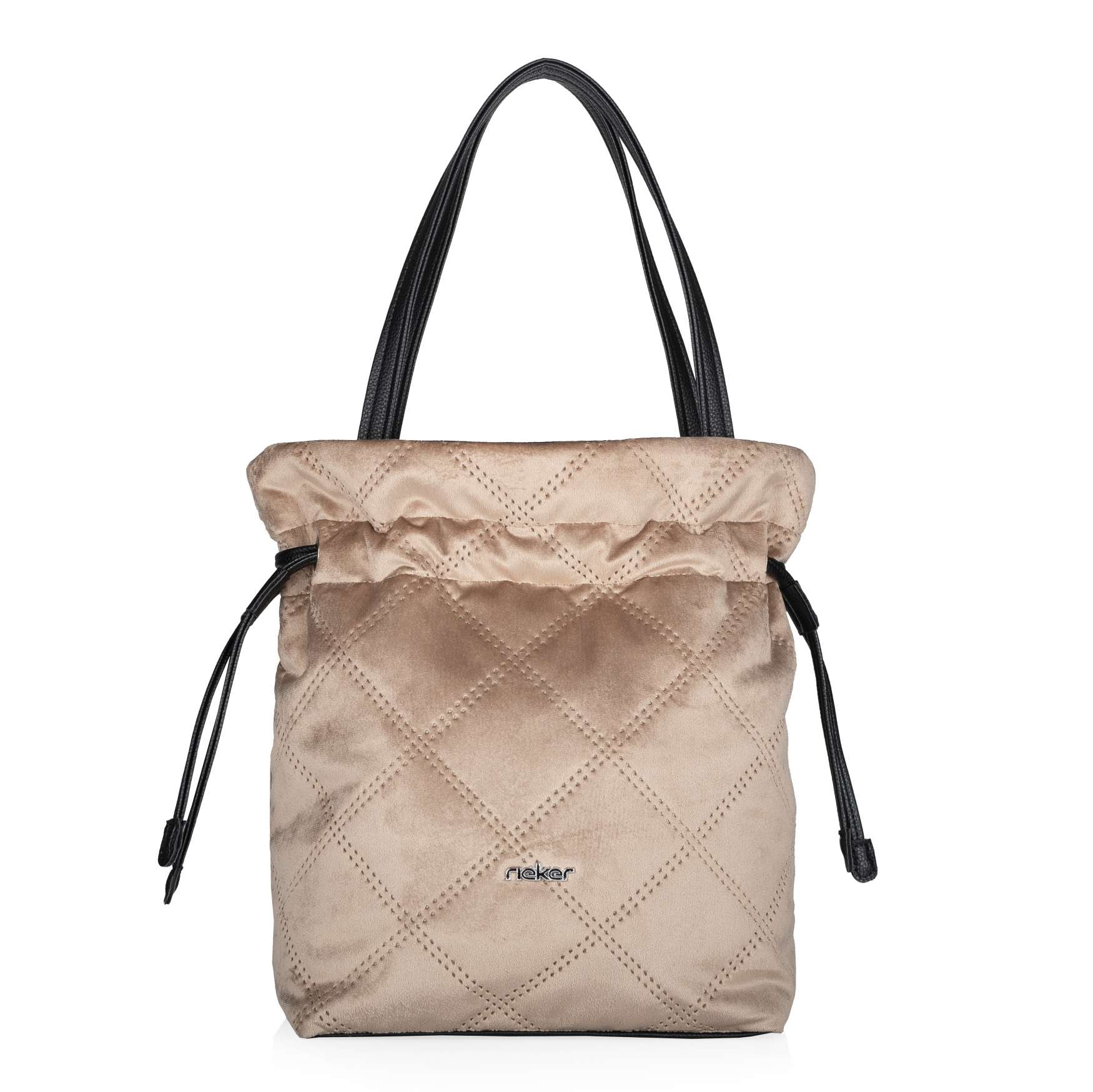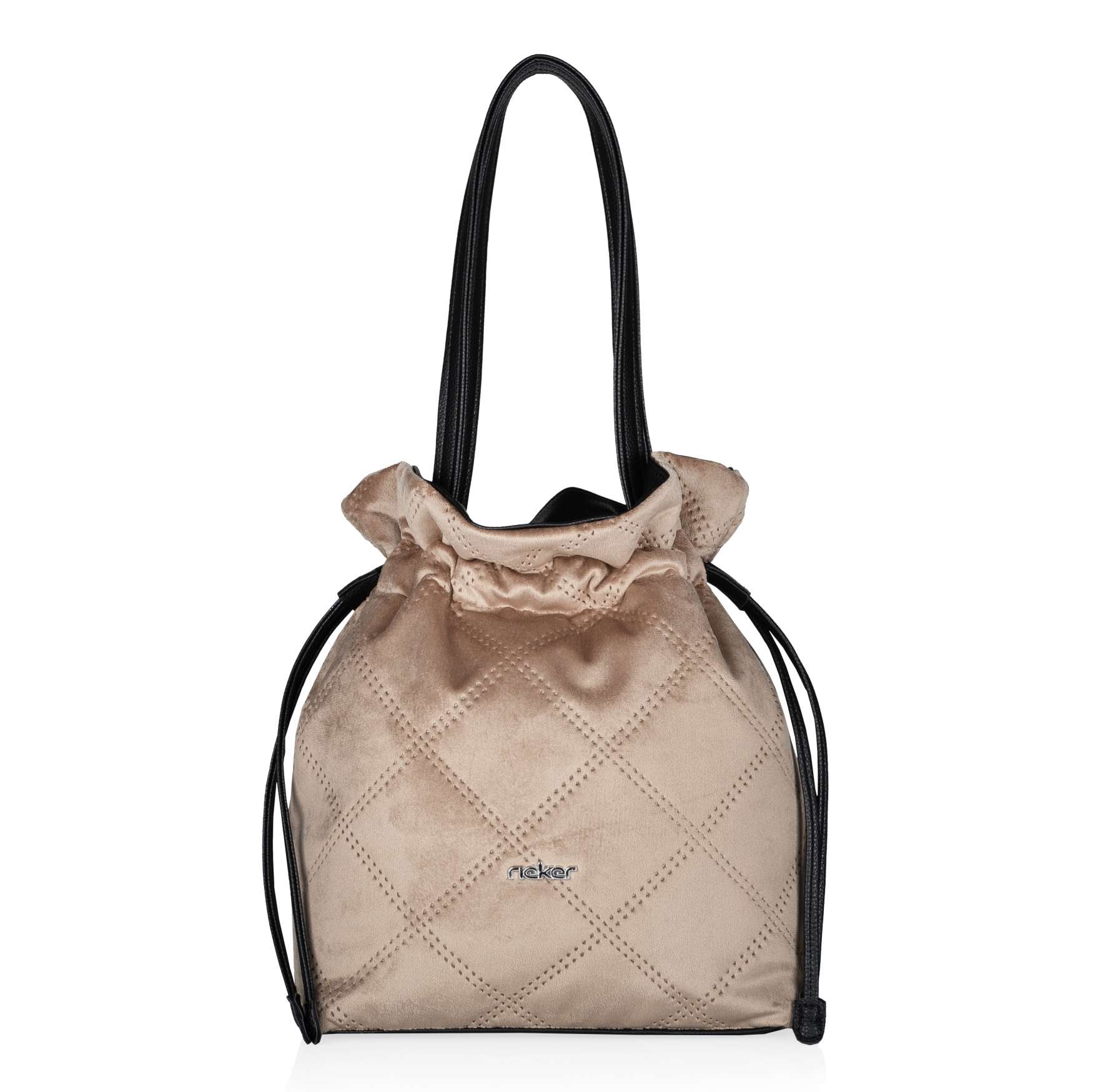 Dámská kabelka značky RIEKER, jejíž nošení bude šperkem Vašeho vzhledu. Svršek zdobí logo značky a boční stahovací pásky pro upravení kabelky do tvaru měšce. Po otevření hlavní kapsy uvidíme další dvě malé kapsičky, kde si můžeme dát klíče nebo doklady. Velká kapsa je dostatečně prostorná pro všechny nezbytné věci. Kabelka má dva popruhy pro pohodlné nošení přes rameno. Tento model si zamilujete na první pohled. Rozměry: cca ve 40 cm x š 28 cm Vnitřní uspořádání: kabelka není dělená. Délka popruhu pro nošení přes rameno je cca 50 cm.