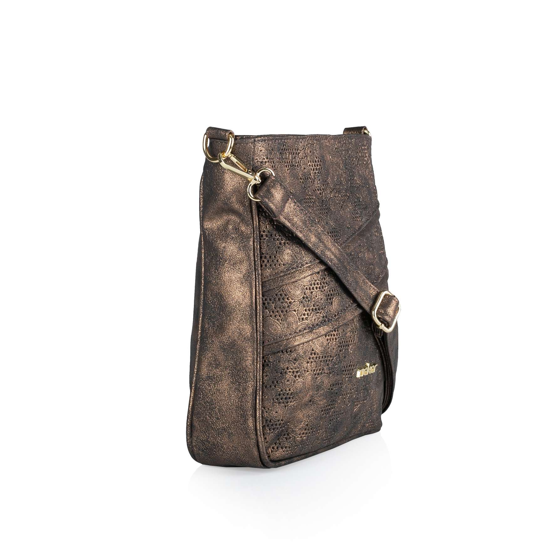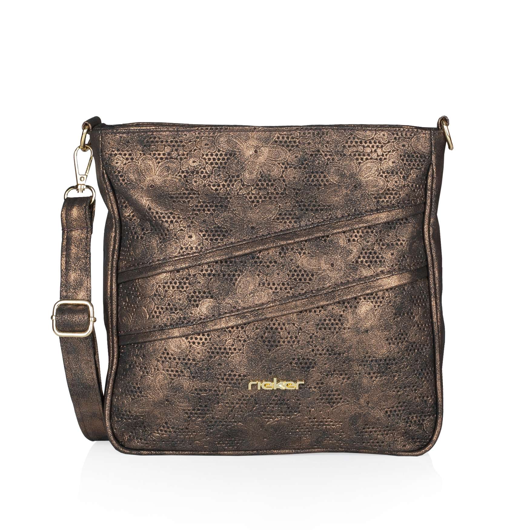 Tato menší crossbody kabelka značky Rieker jistě potěší nejednu ženu, která se ráda cítí výjimečně a zároveň hledá kousek, který snadno sladí se svým šatníkem. Svršek s metalickými odlesky je zdoben vzorem květin, výrazným prošitím a k tomu logem značky. Na zadní straně se nachází menší kapsička na drobnosti. Do hlavní kapsy se dostanete pomocí zipu na horním kraji, po jehož otevření se dostanete do vnitřní části, zde se nachází dvě malé kapsičky. Do města či na schůzku s přáteli bude tento model pro Vás volbou číslo jedna. Rozměry: cca v 26 cm x š 25 cm Vnitřní uspořádání: Kabelka není dělená. Kabelka má délkově nastavitelný popruh, který lze odepnout. Maximální délka nastavitelného popruhu je cca 140 cm.