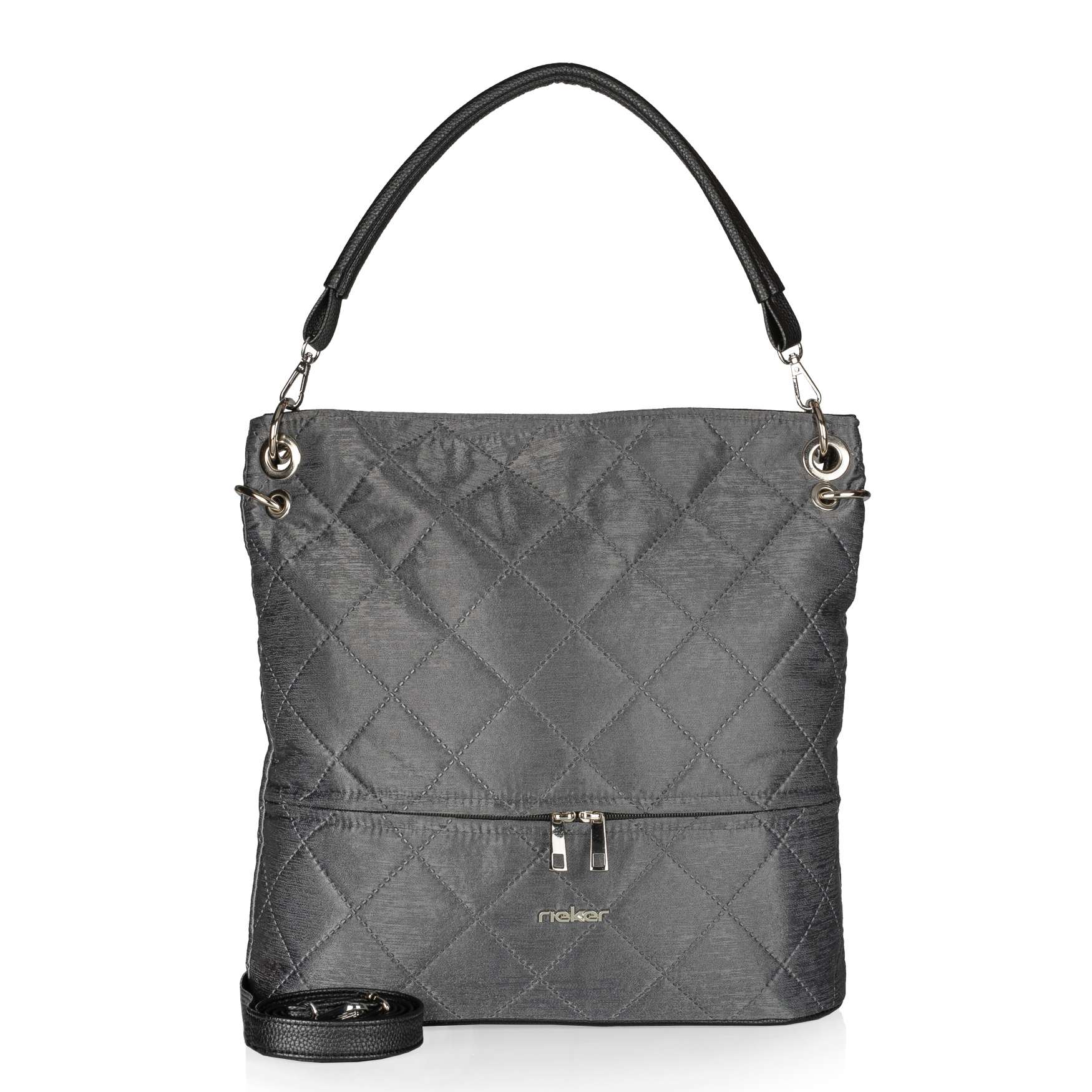Tato kabelka od značky RIEKER má svršek z příjemného materiálu v šedé barvě. Na přední straně je kapsa na zip, kde si můžete uschovat různé drobnosti. Taška má také praktický zip, po jehož rozepnutí se Vám uvnitř nabízí několik dalších kapes například na mobil nebo klíče. Má jedno ucho, ale také délkově nastavitelný popruh, který lze připnout. Tento model dokonale padne ke každému Vašemu outfitu. Rozměry: cca v 34 cm x š 35 cm Vnitřní uspořádání: kabelka není dělená Kabelka má délkově nastavitelný popruh, který lze odepnout.