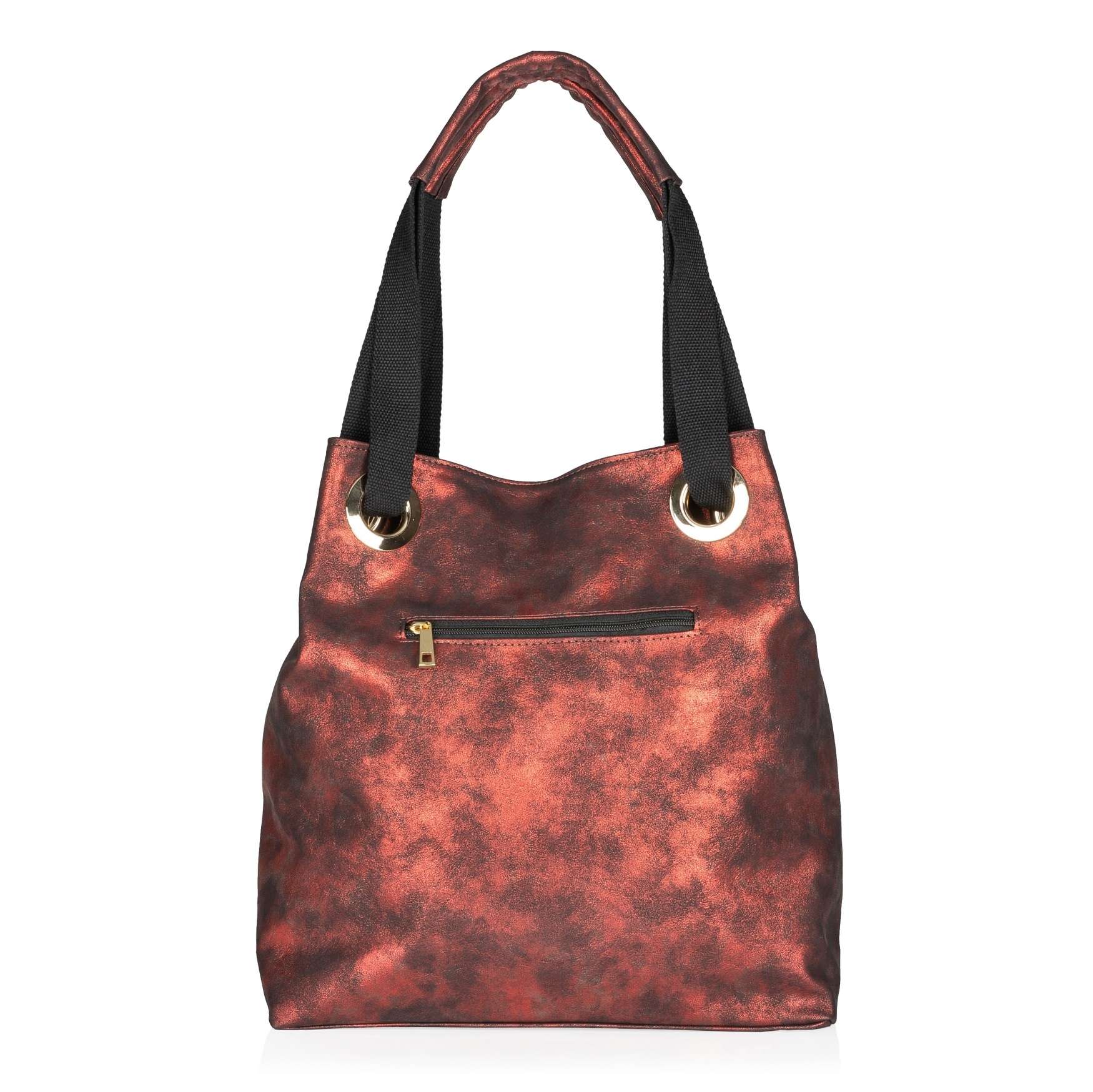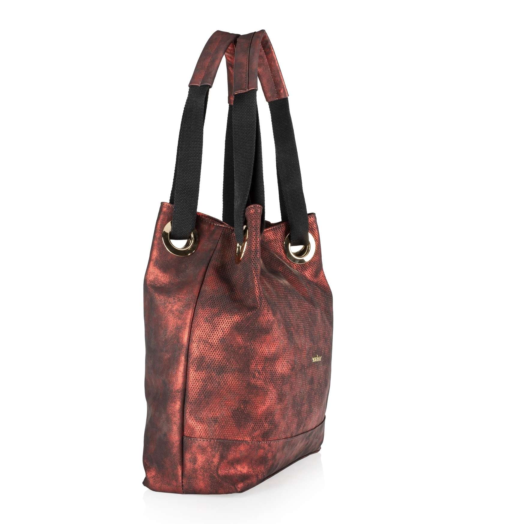 Dámská taška značky RIEKER, která Vás zaujme svým vzhledem a praktičností. Vrchní materiál je v červené barvě a zdobí jej zlaté detaily. Ze zadní strany Vás jistě potěší malá kapsa sloužící k uložení různých drobností. Kabelka má zip, po jehož rozepnutí se Vám nabízí několik dalších kapes například na mobil nebo klíče. Tento praktický model bude spolehlivým společníkem pro každodenní pochůzky. Rozměry: cca v 39 cm x š 37 cm Vnitřní uspořádání: Kabelka není dělená.